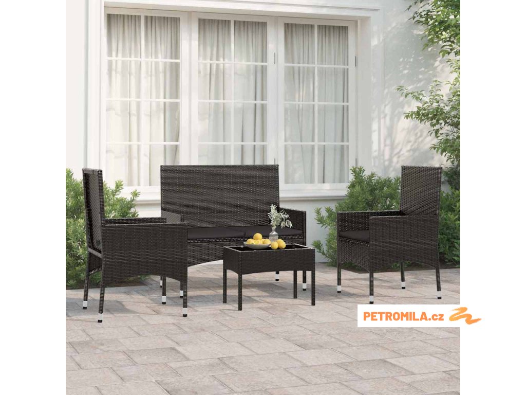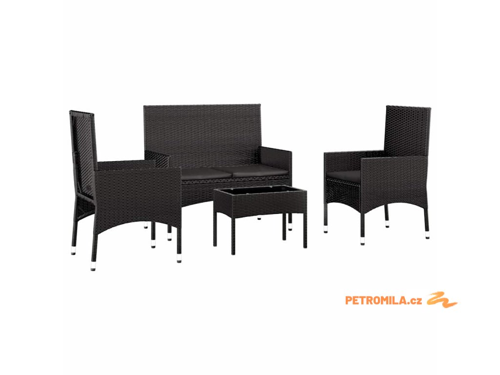 4dílná zahradní sedací souprava s poduškami černá polyratan