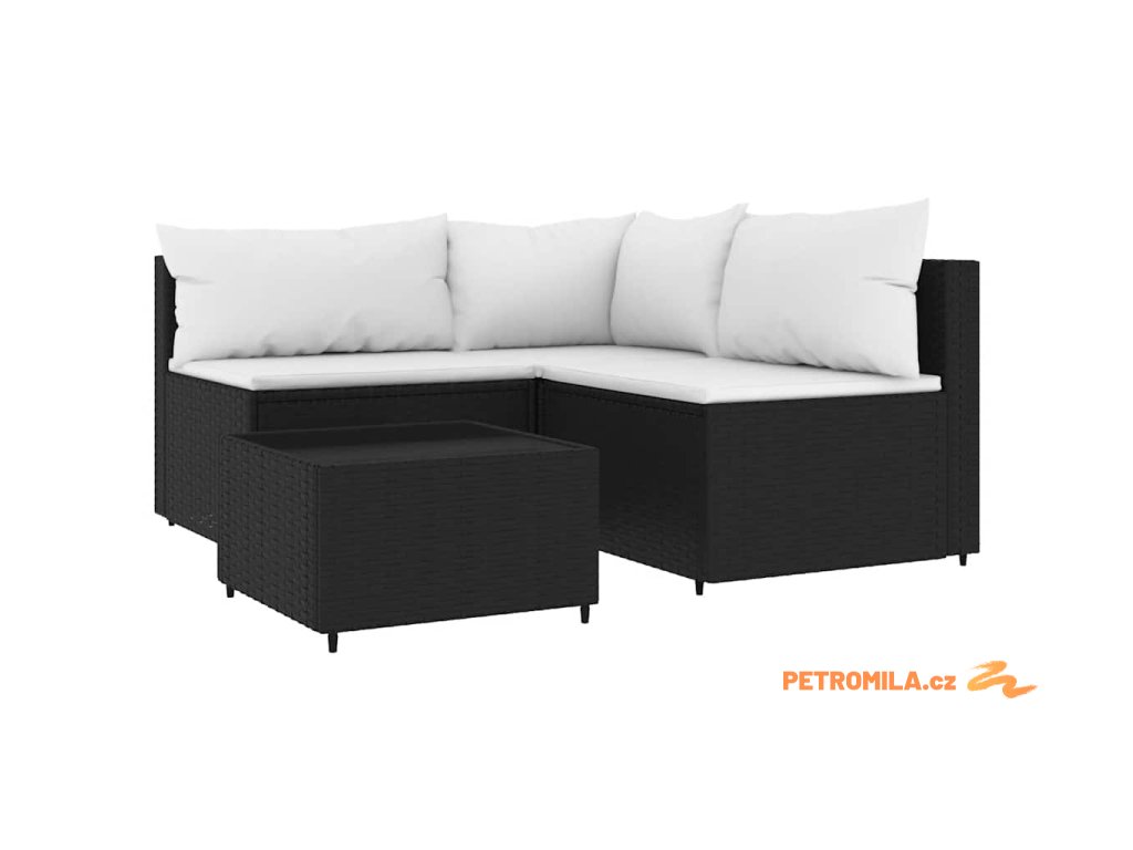 4dílná zahradní sedací souprava s poduškami černá polyratan
