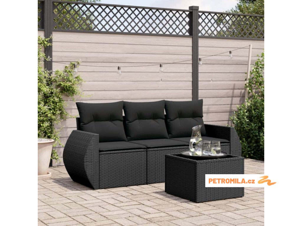 4dílná zahradní sedací souprava s poduškami černá polyratan