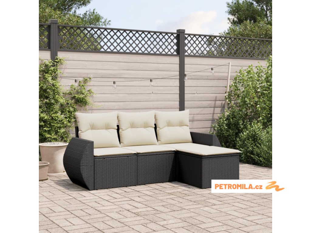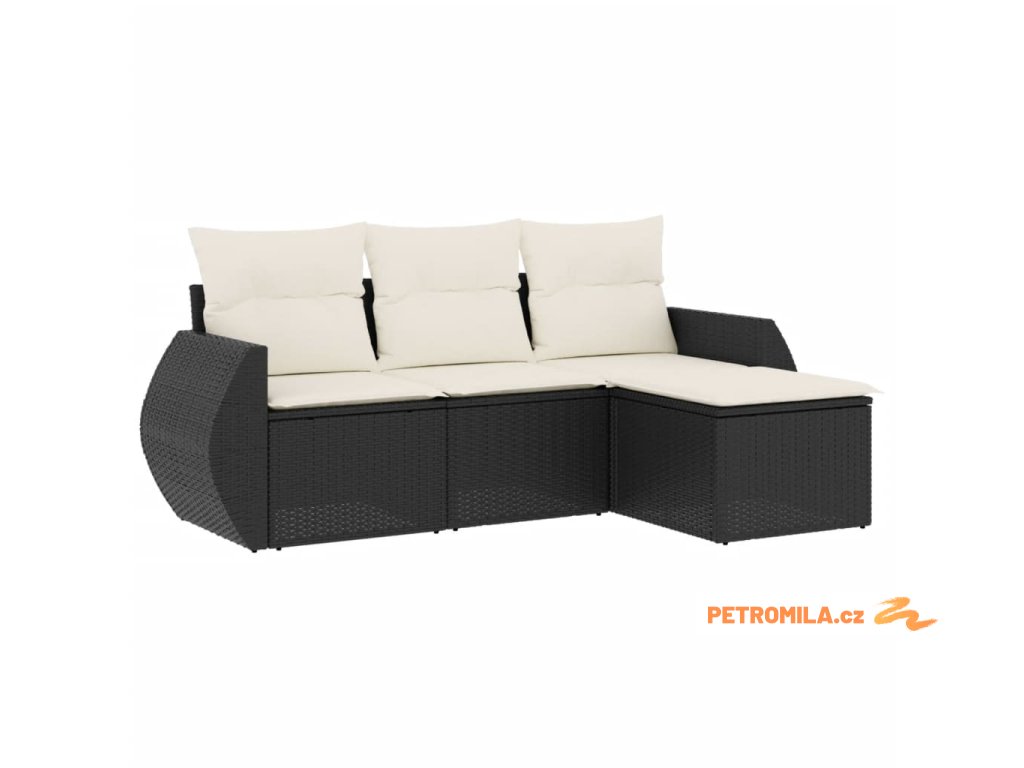 4dílná zahradní sedací souprava s poduškami černá polyratan