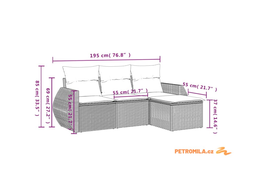 - Rozměry podušky za záda: 55 x 45 x 13 cm (D x Š x T)