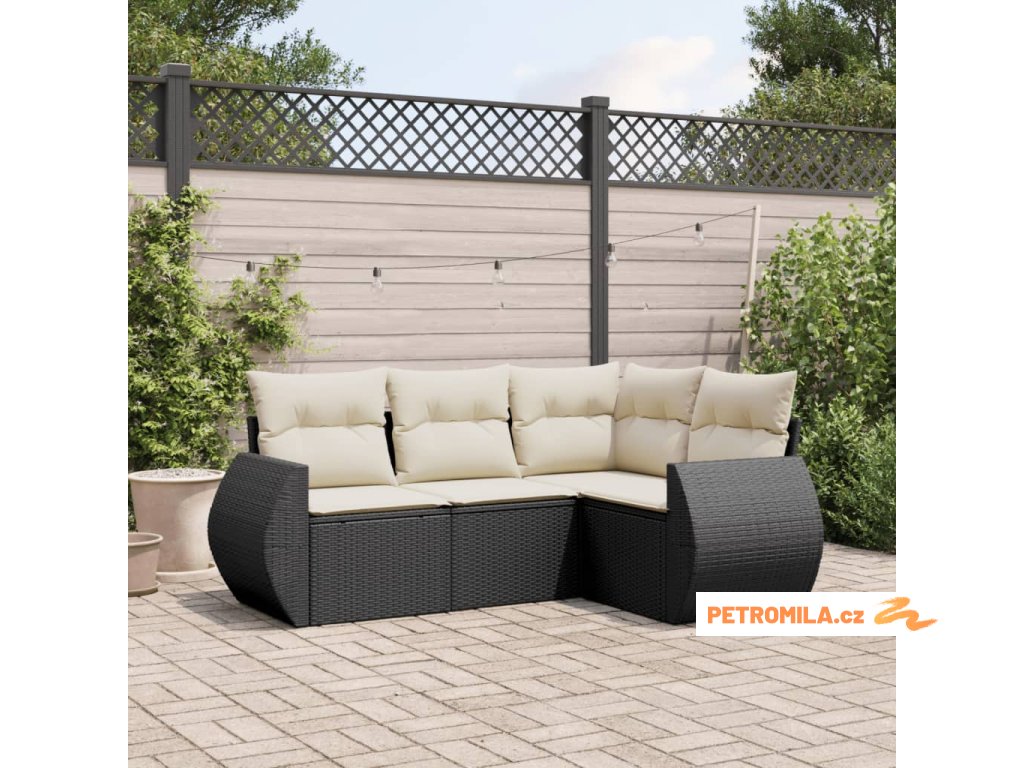 4dílná zahradní sedací souprava s poduškami černá polyratan