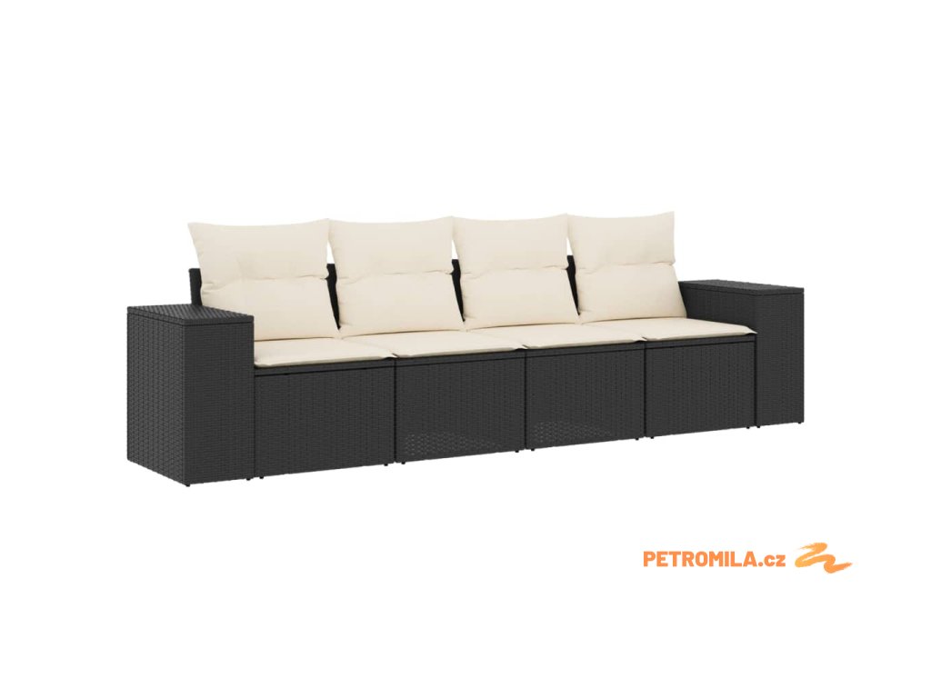 4dílná zahradní sedací souprava s poduškami černá polyratan