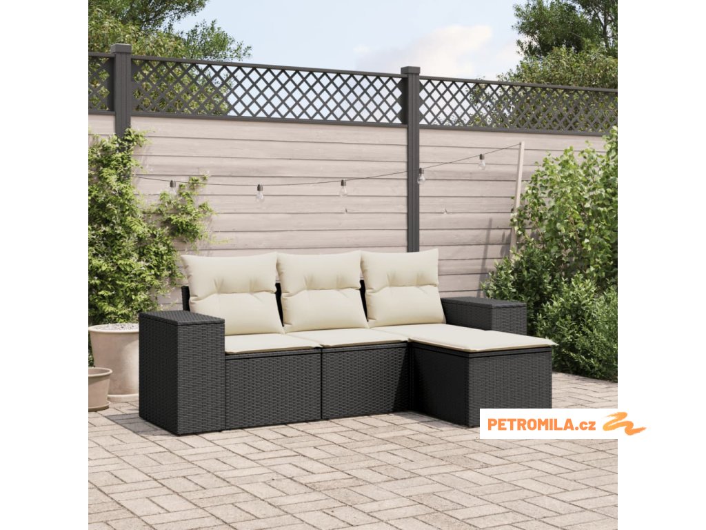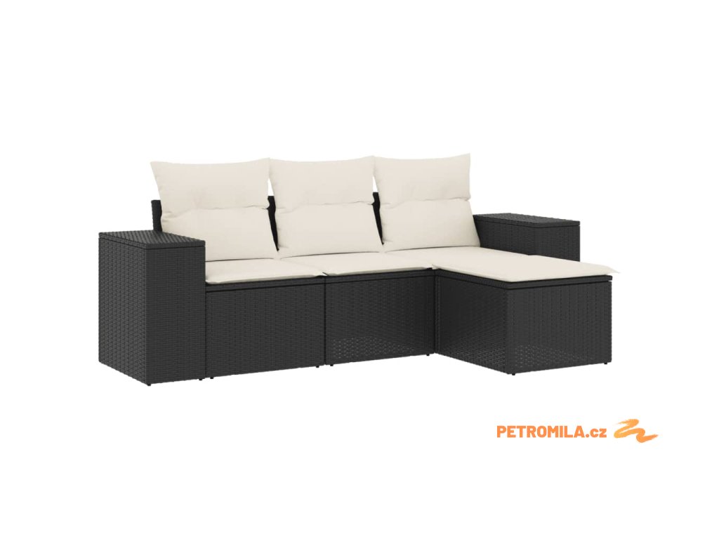4dílná zahradní sedací souprava s poduškami černá polyratan