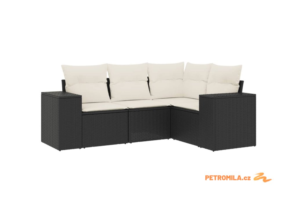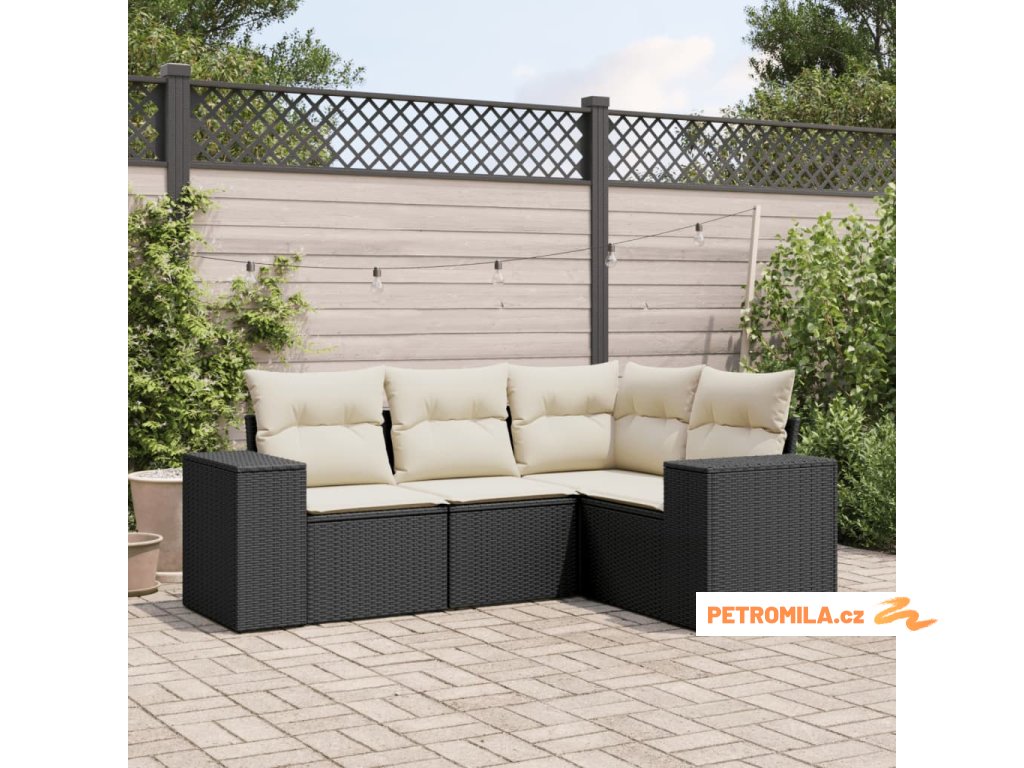 4dílná zahradní sedací souprava s poduškami černá polyratan