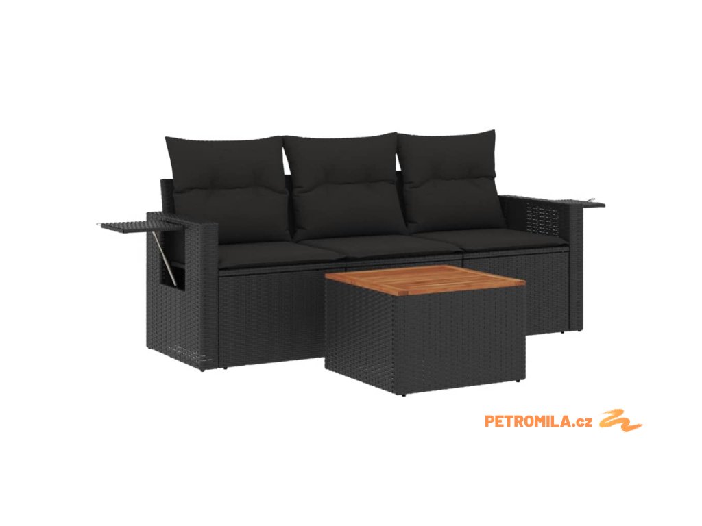4dílná zahradní sedací souprava s poduškami černá polyratan