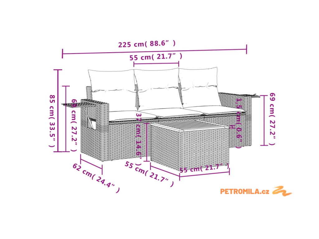 Tato zahradní sedací souprava je dokonalým doplňkem vaší zahrady, terasy nebo dvorku a poskytne vám pohodlné a příjemné místo, kde si můžete povídat s rodinou a přáteli nebo jen tak odpočívat a užívat si pobyt venku.