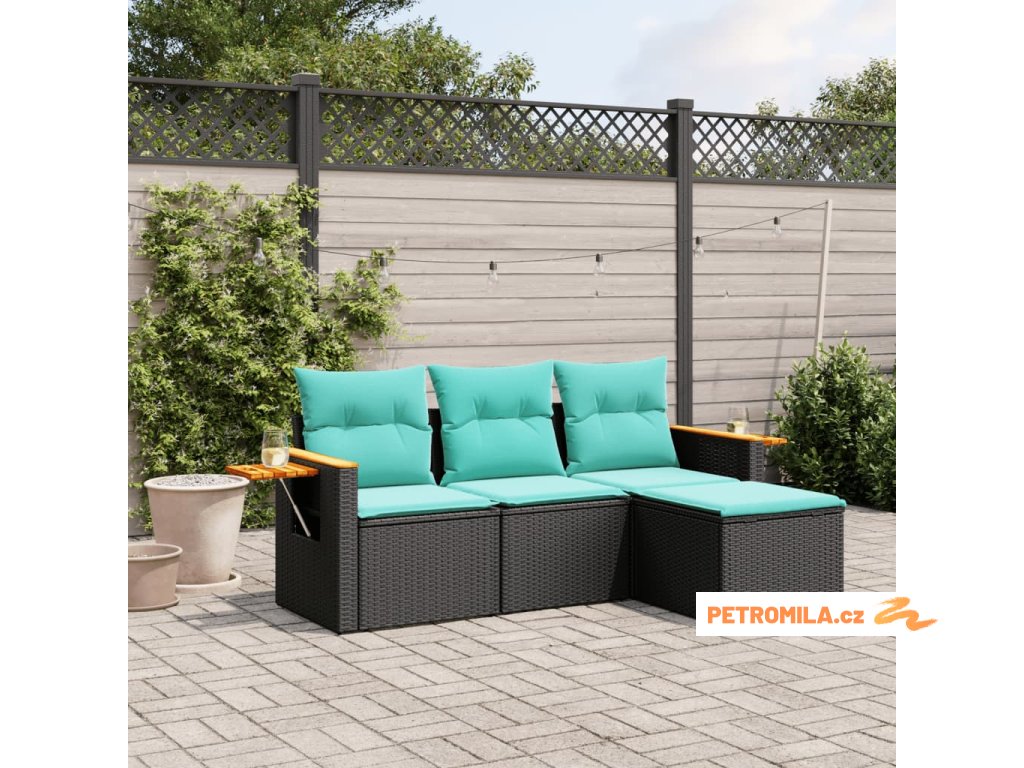 4dílná zahradní sedací souprava s poduškami černá polyratan