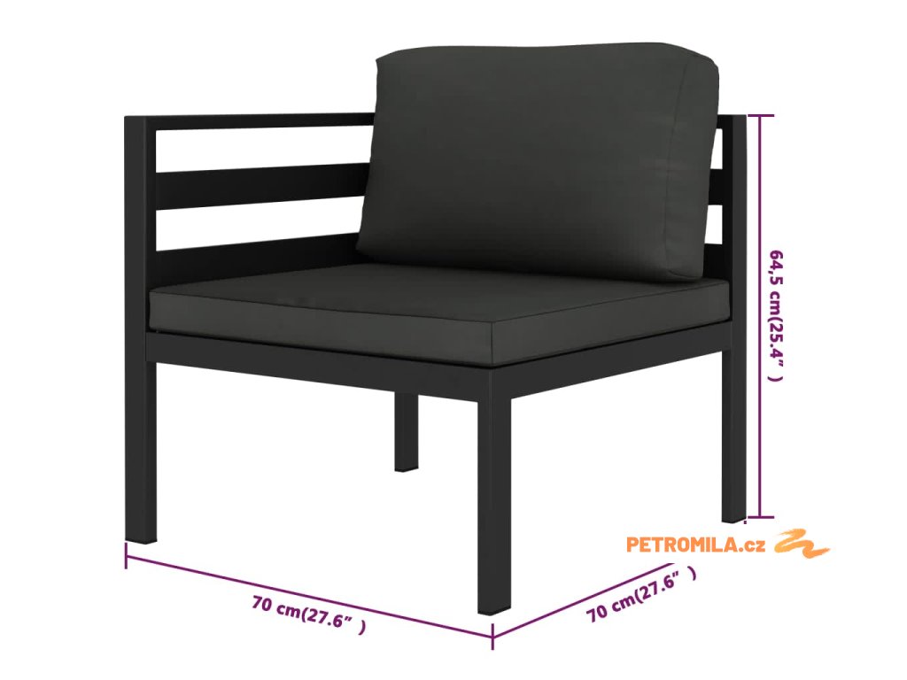 - Rozměry rohové pohovky: 70 x 70 x 64,5 cm (Š x H x V)