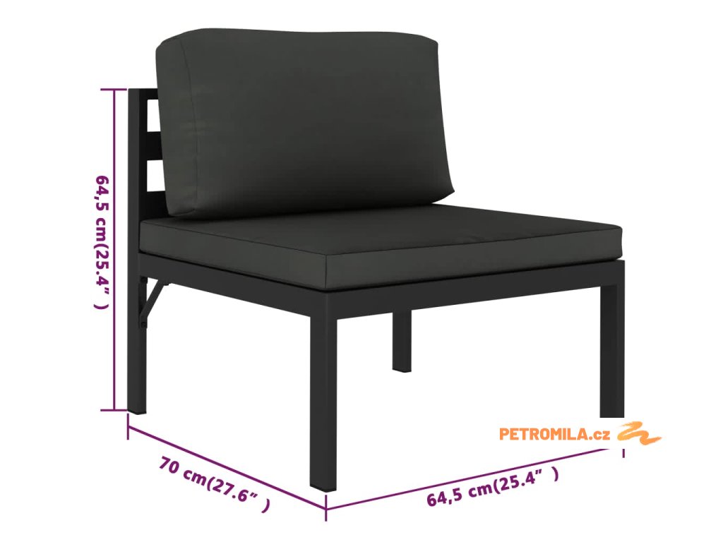 - Rozměry středové pohovky: 64,5 x 70 x 64,5 cm (Š x H x V)