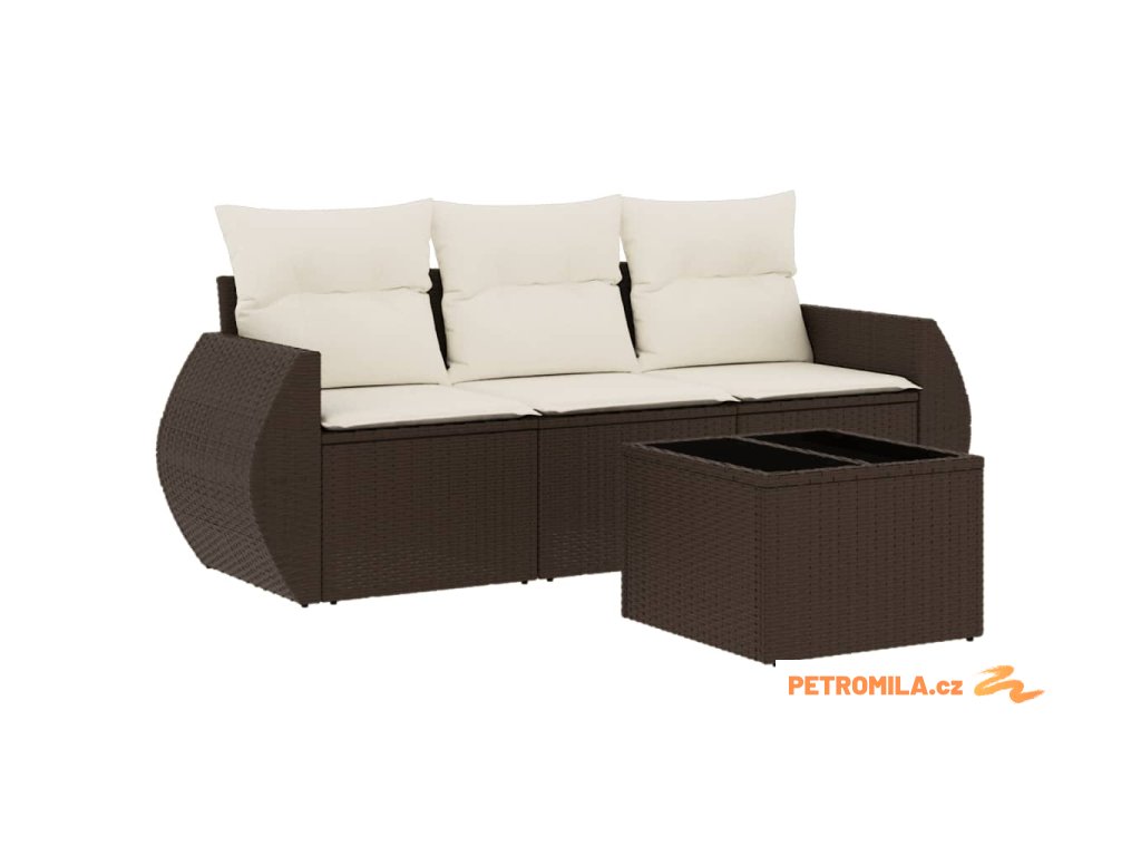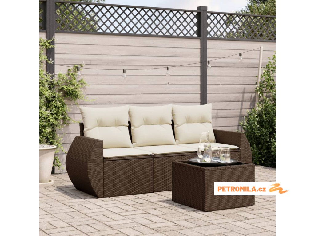 4dílná zahradní sedací souprava s poduškami hnědá polyratan