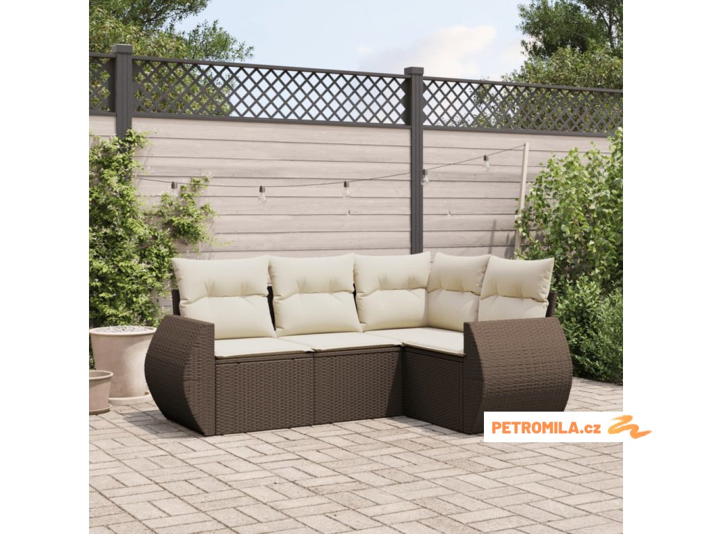 4dílná zahradní sedací souprava s poduškami hnědá polyratan
