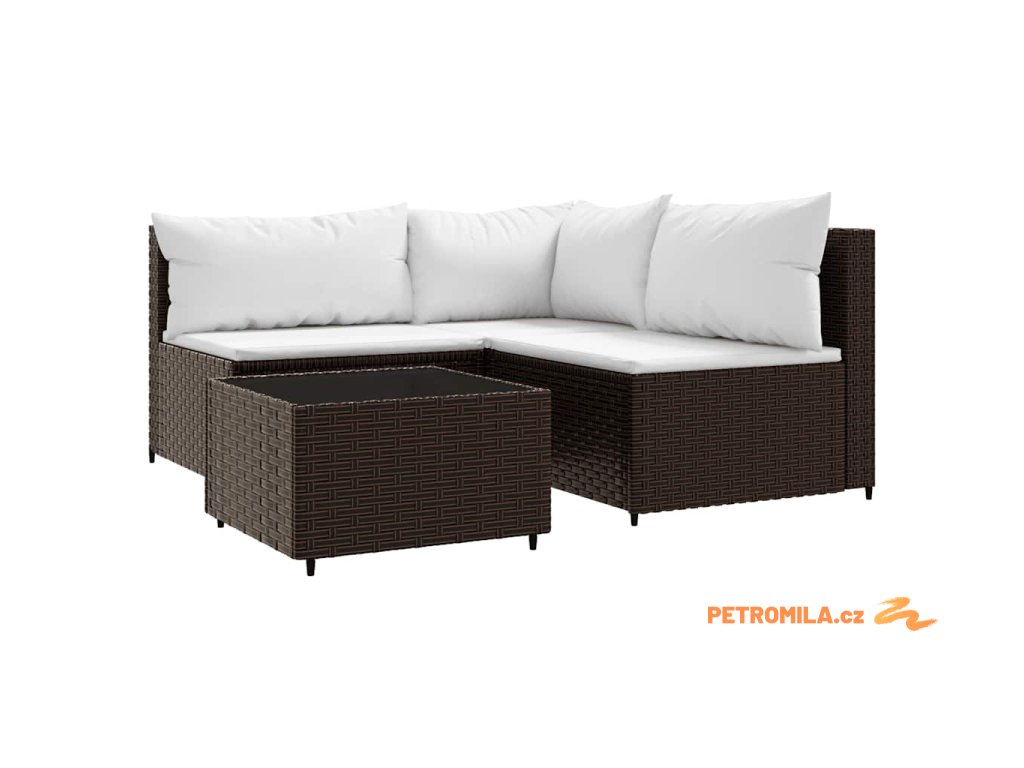 4dílná zahradní sedací souprava s poduškami hnědá polyratan
