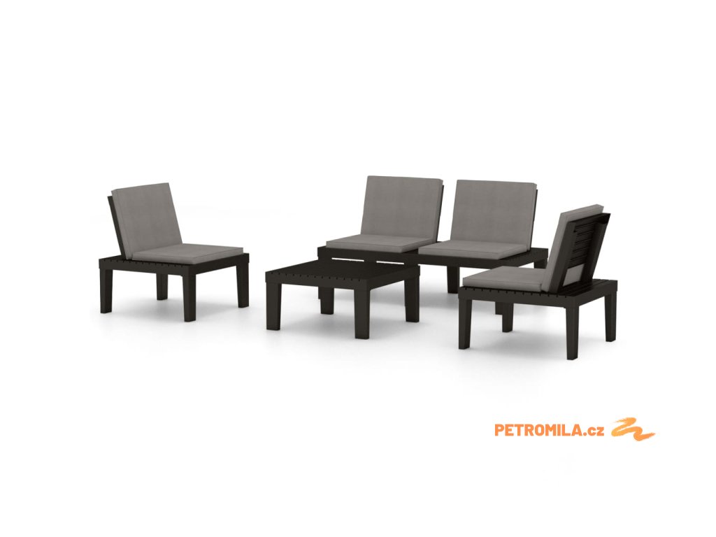 4dílná zahradní sedací souprava s poduškami plast šedá