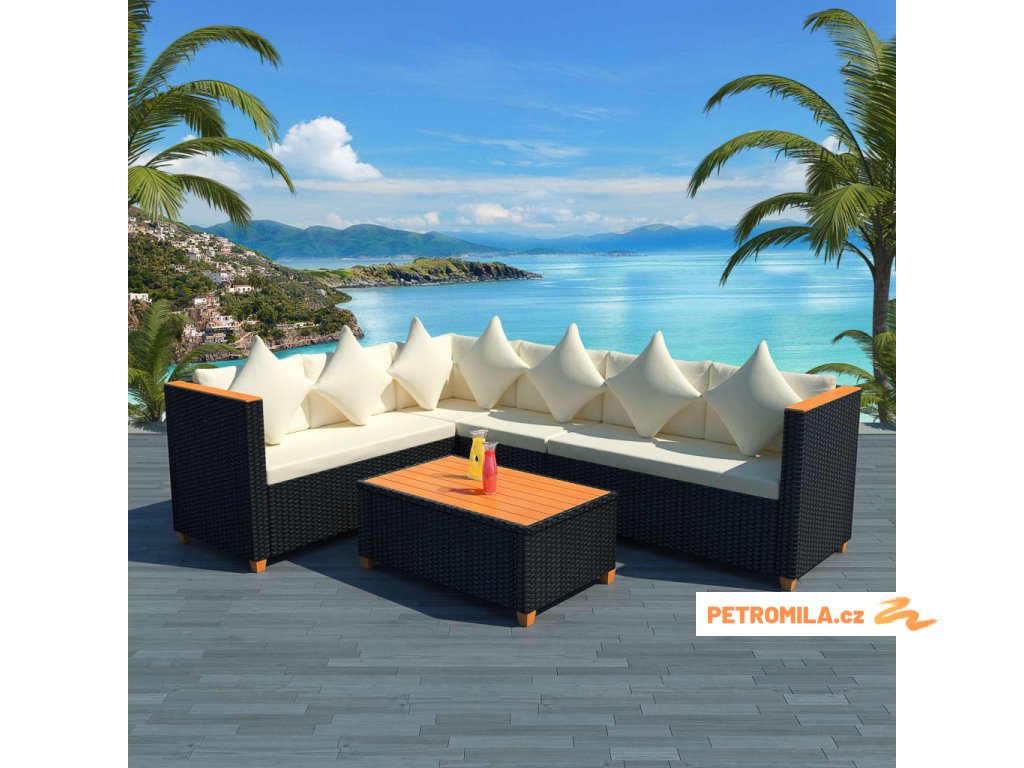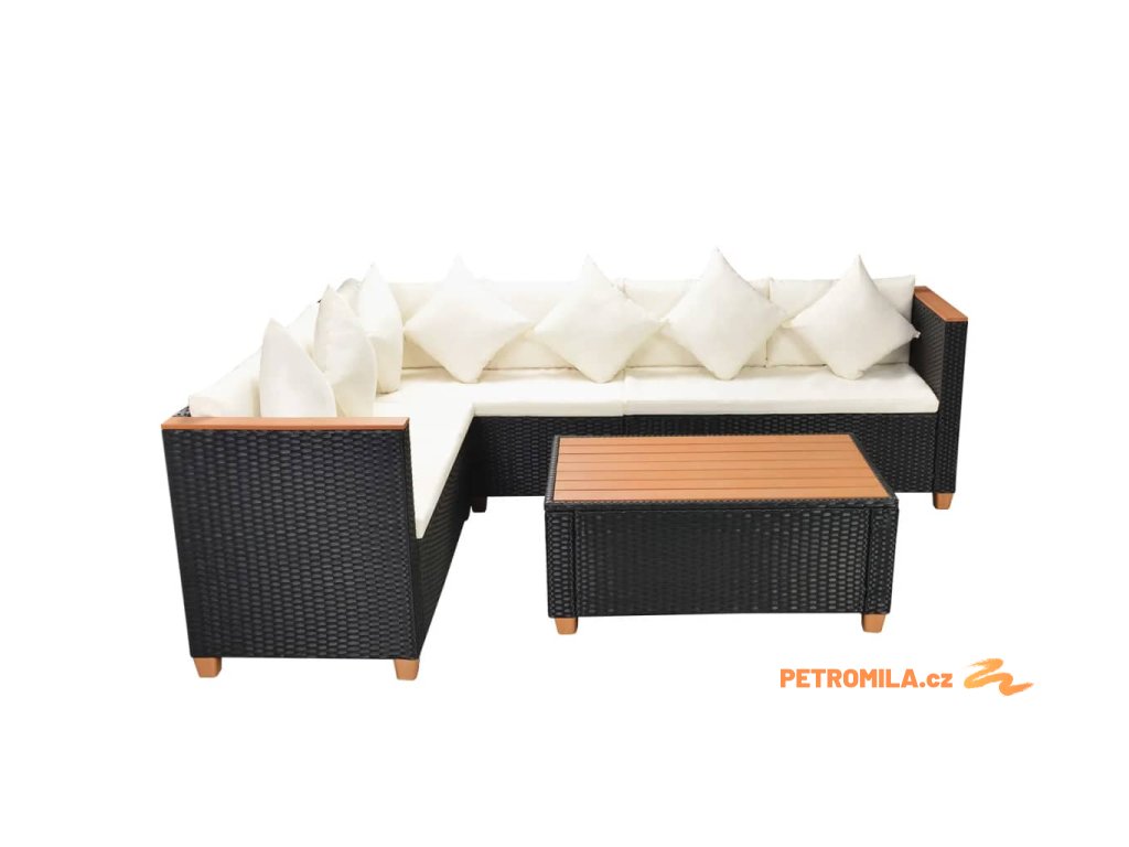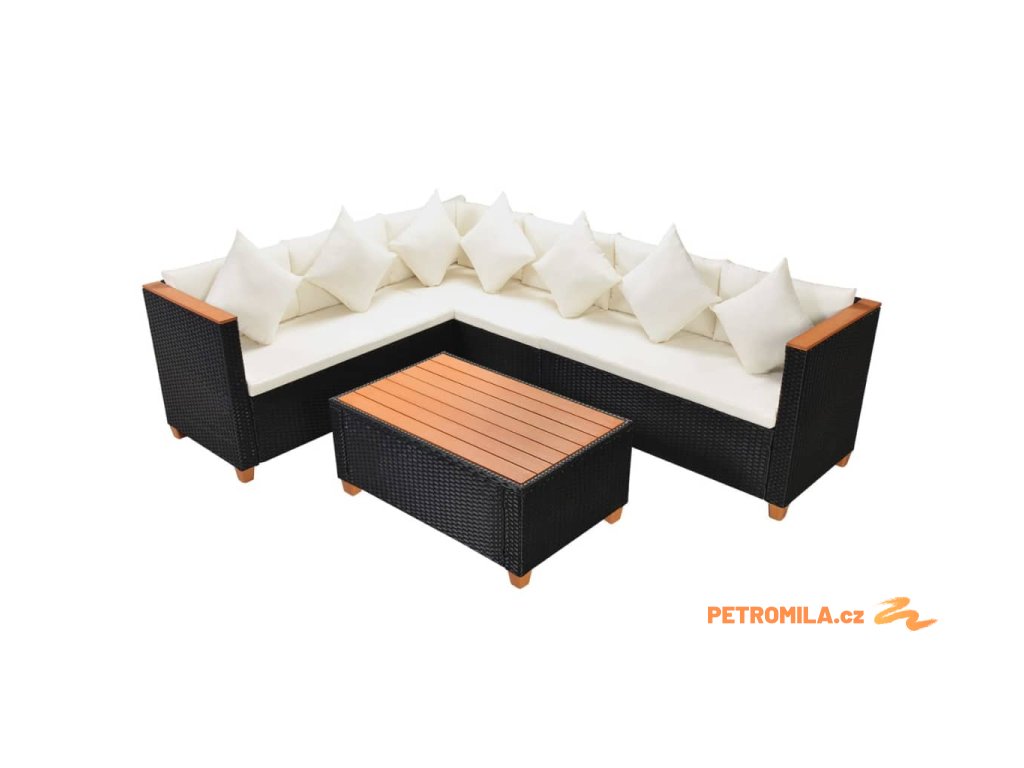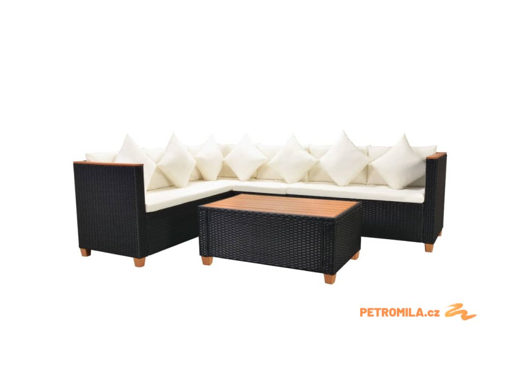 4dílná zahradní sedací souprava s poduškami polyratan černá
