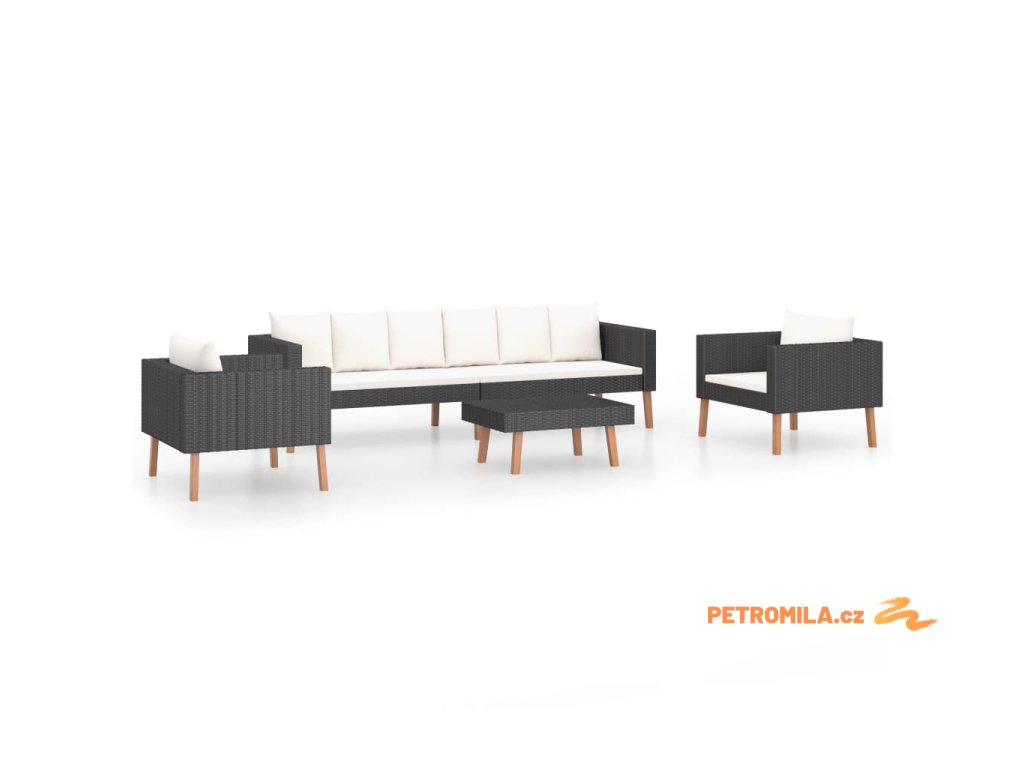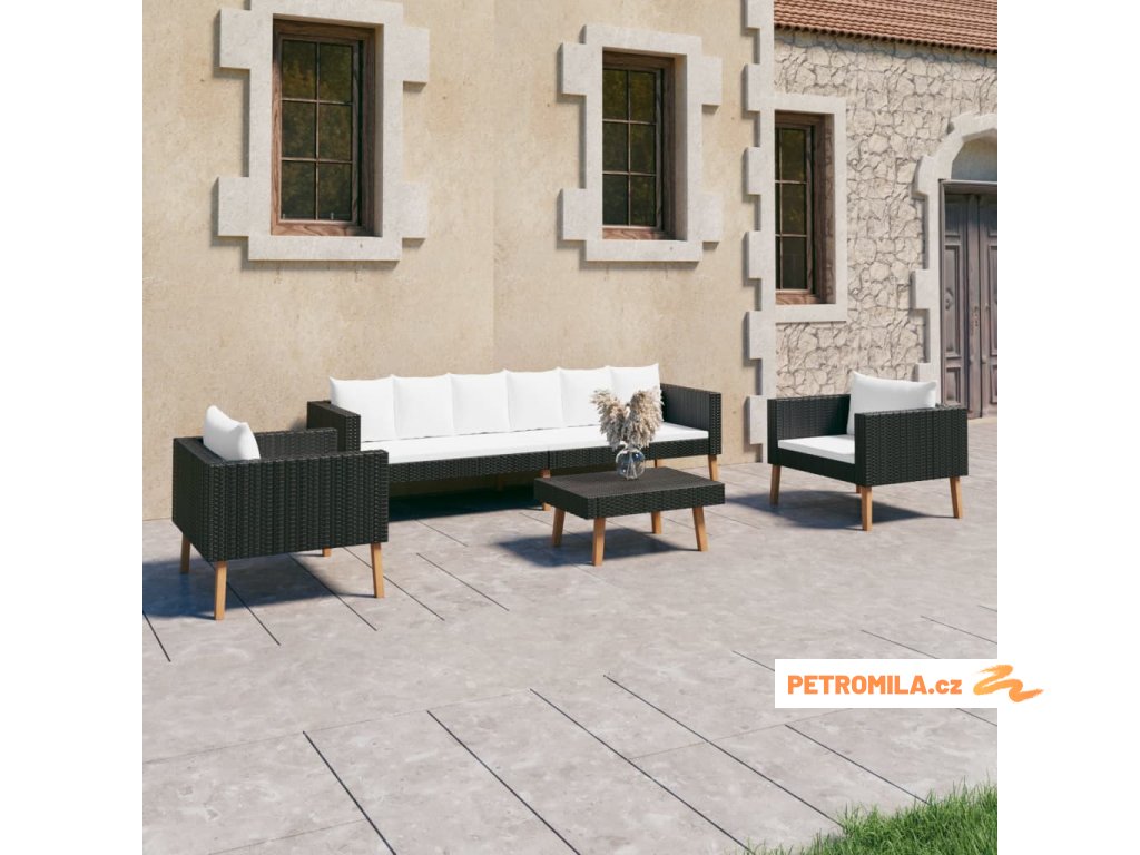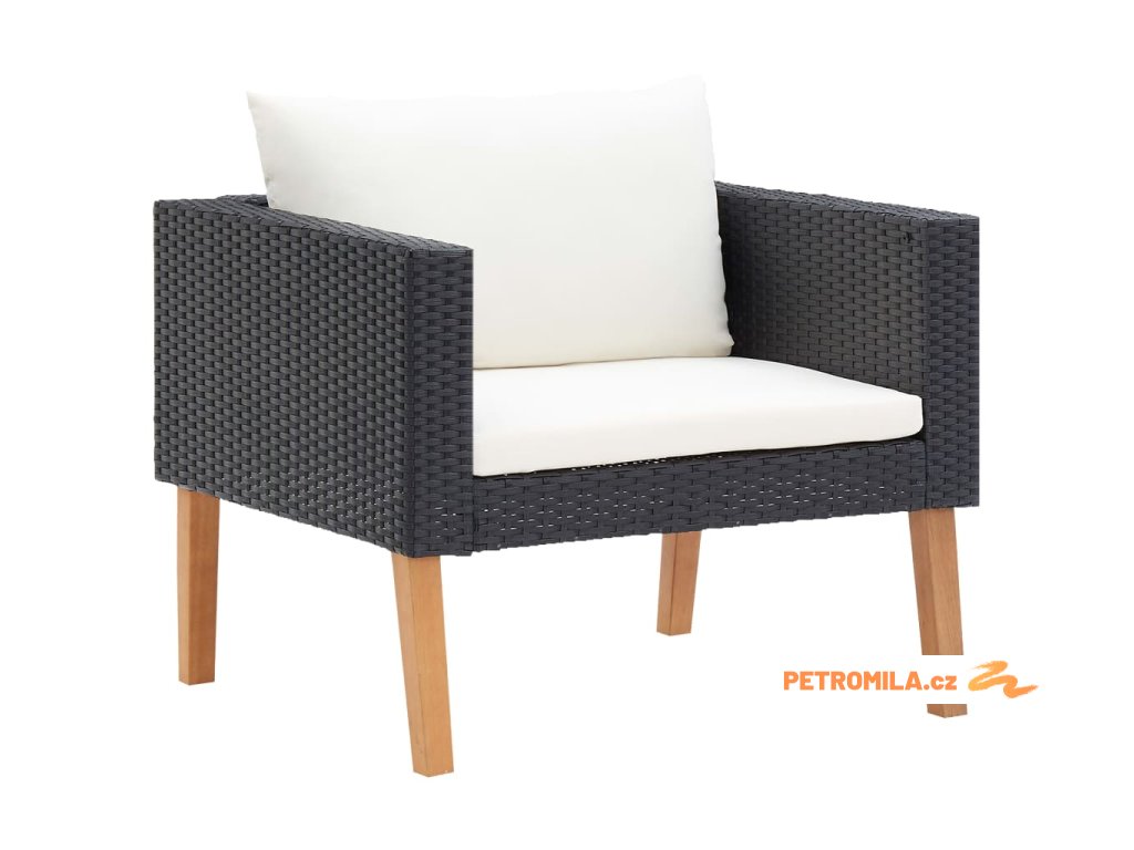 4dílná zahradní sedací souprava s poduškami polyratan černá