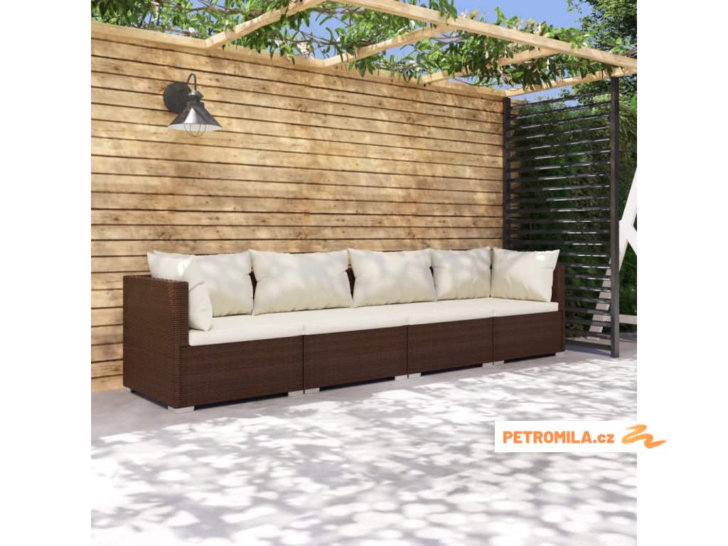 4dílná zahradní sedací souprava s poduškami polyratan hnědá