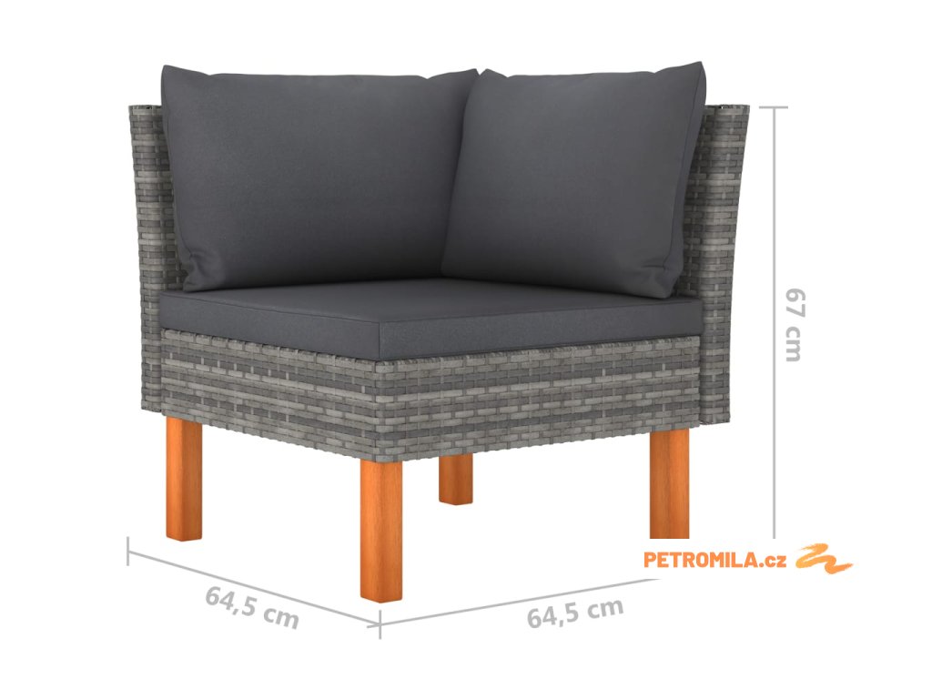 - Rozměry rohové pohovky: 64,5 x 64,5 x 67 cm (Š x H x V)