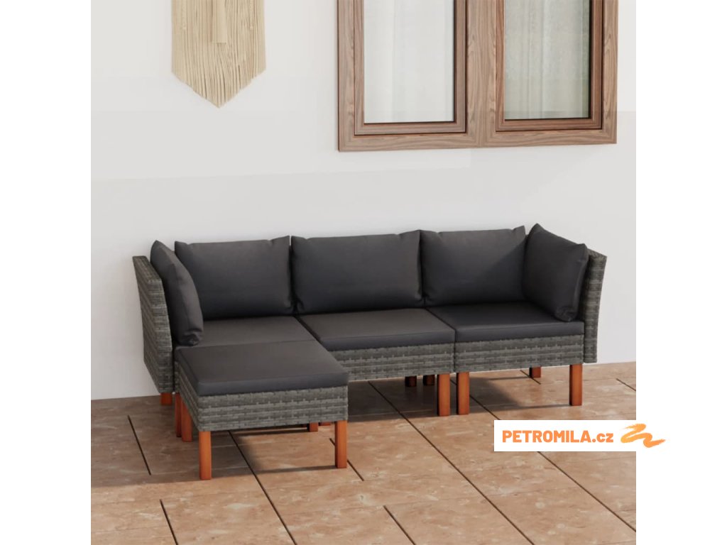 4dílná zahradní sedací souprava s poduškami polyratan šedá