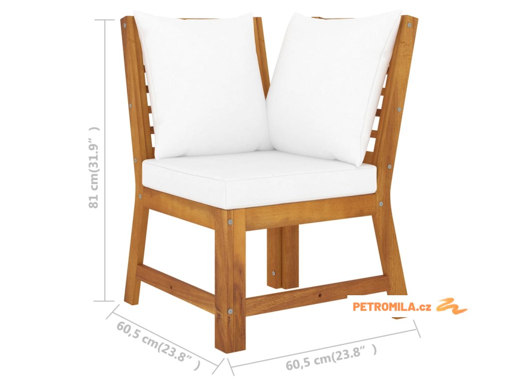 - Rozměry rohové pohovky: 60,5 x 60,5 x 81 cm (Š x H x V)