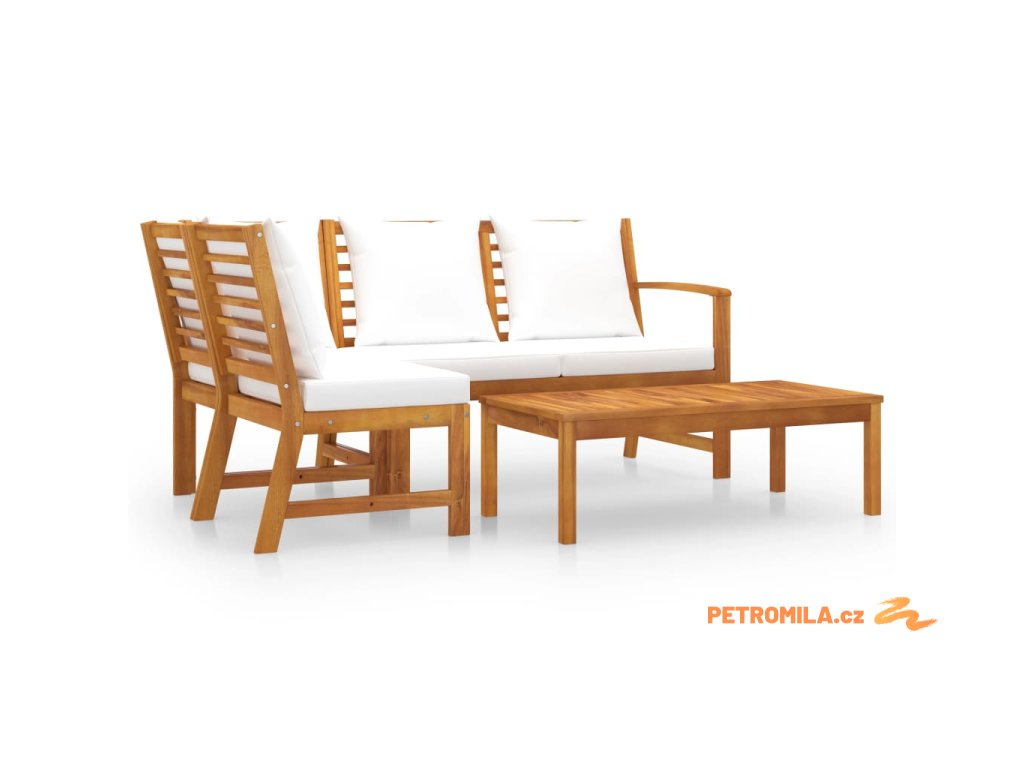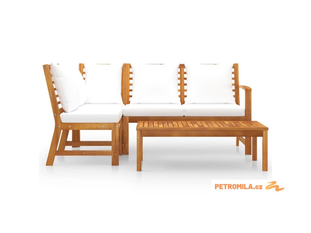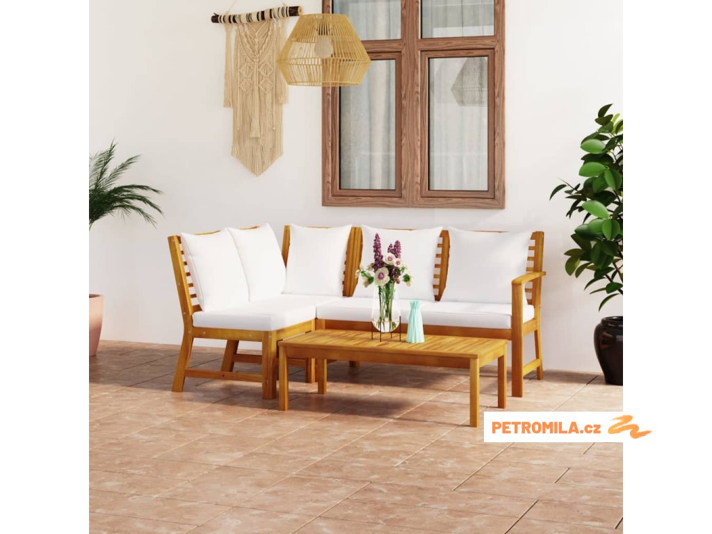 4dílná zahradní sedací souprava s poduškou krémová akácie
