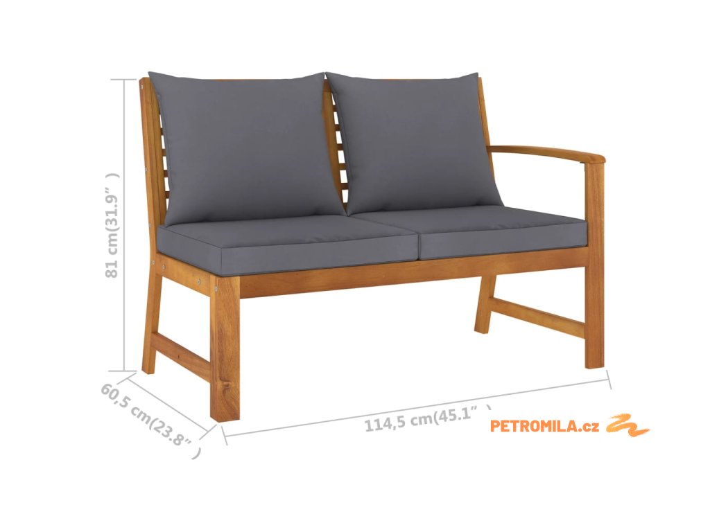 - Rozměry 2místné lavice s pravou/levou područkou: 114,5 x 60,5 x 81 cm (Š x H x V)