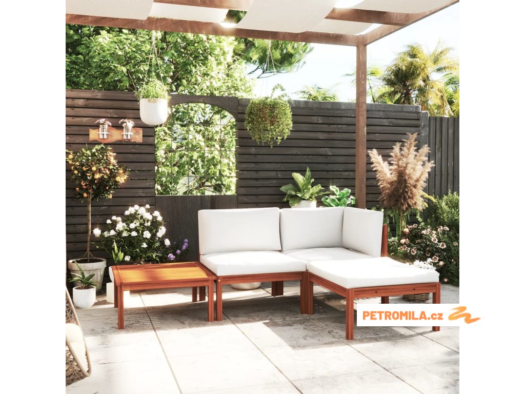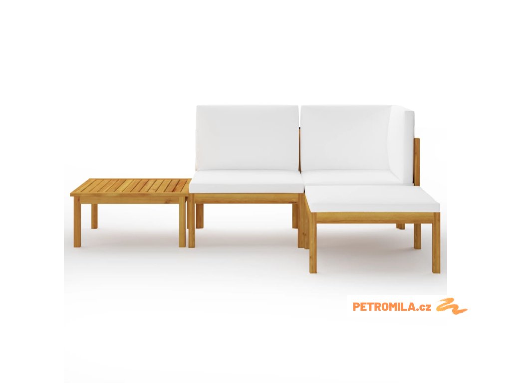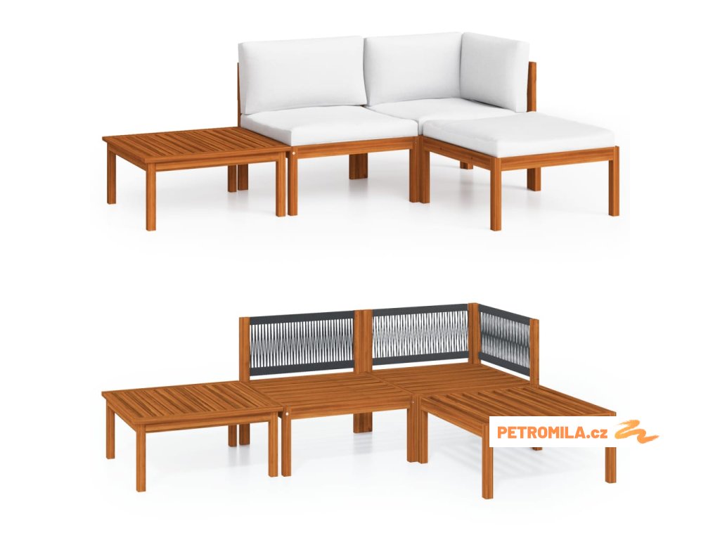 4dílná zahradní sedací souprava s polštáři krémové dřevo akácie a provaz