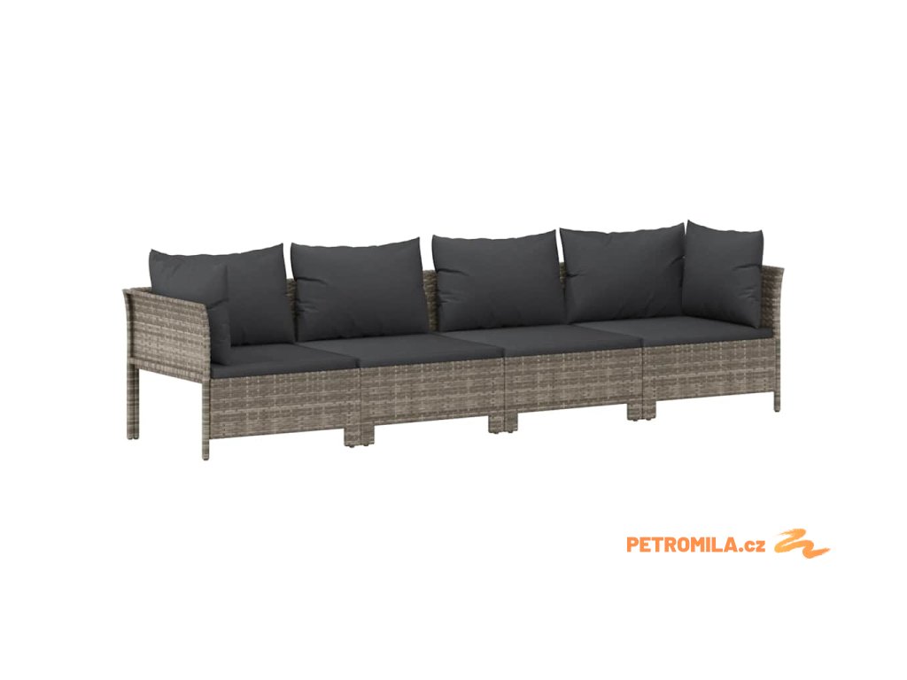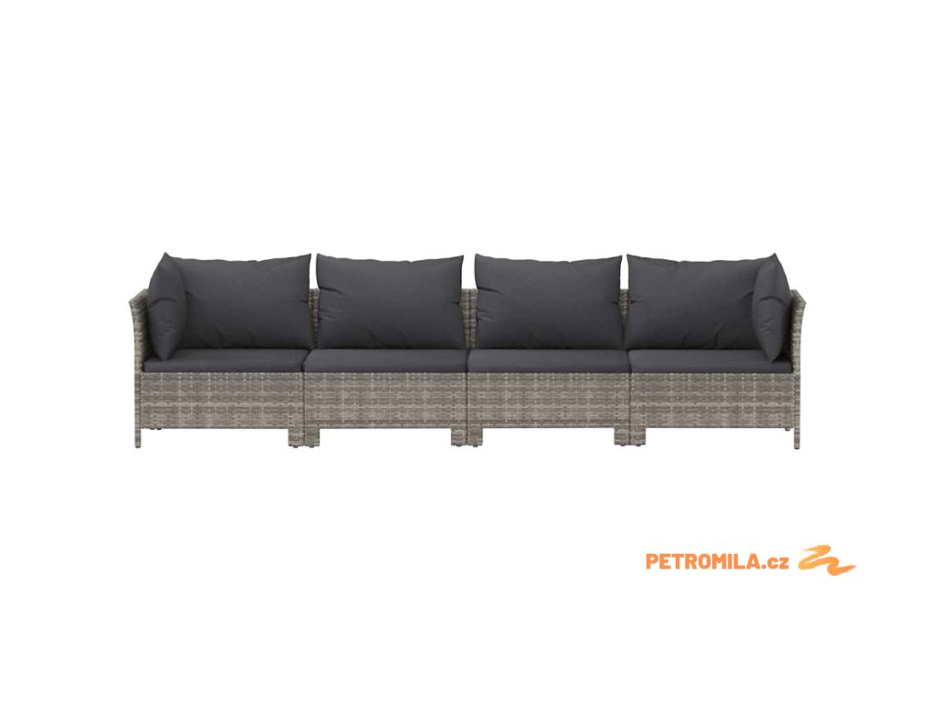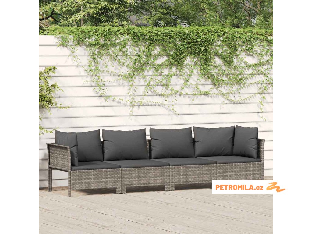 4dílná zahradní sedací souprava s polštáři šedá polyratan
