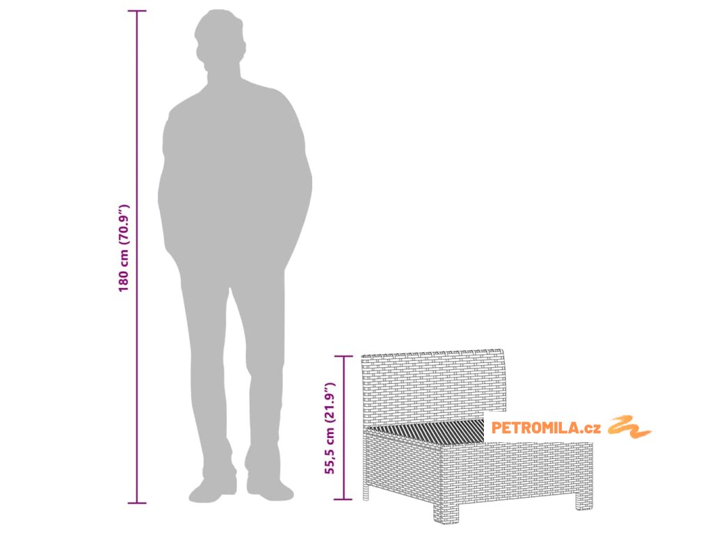 - Materiál: Polyratan, práškově lakovaná ocel, látka (100% polyester)
