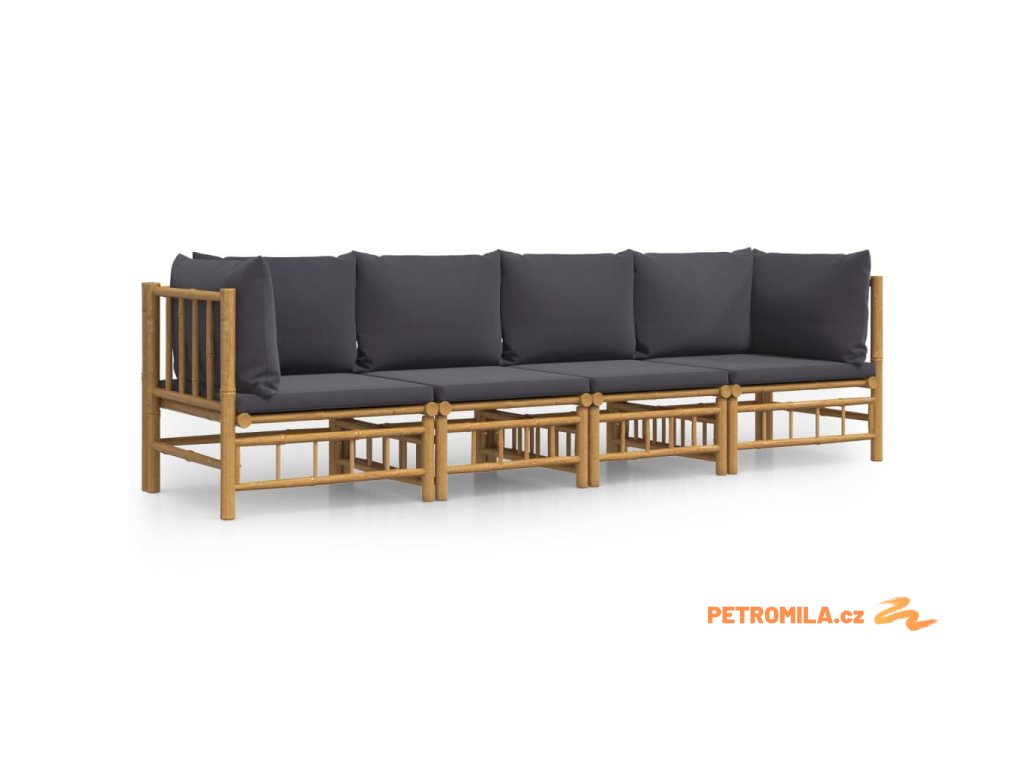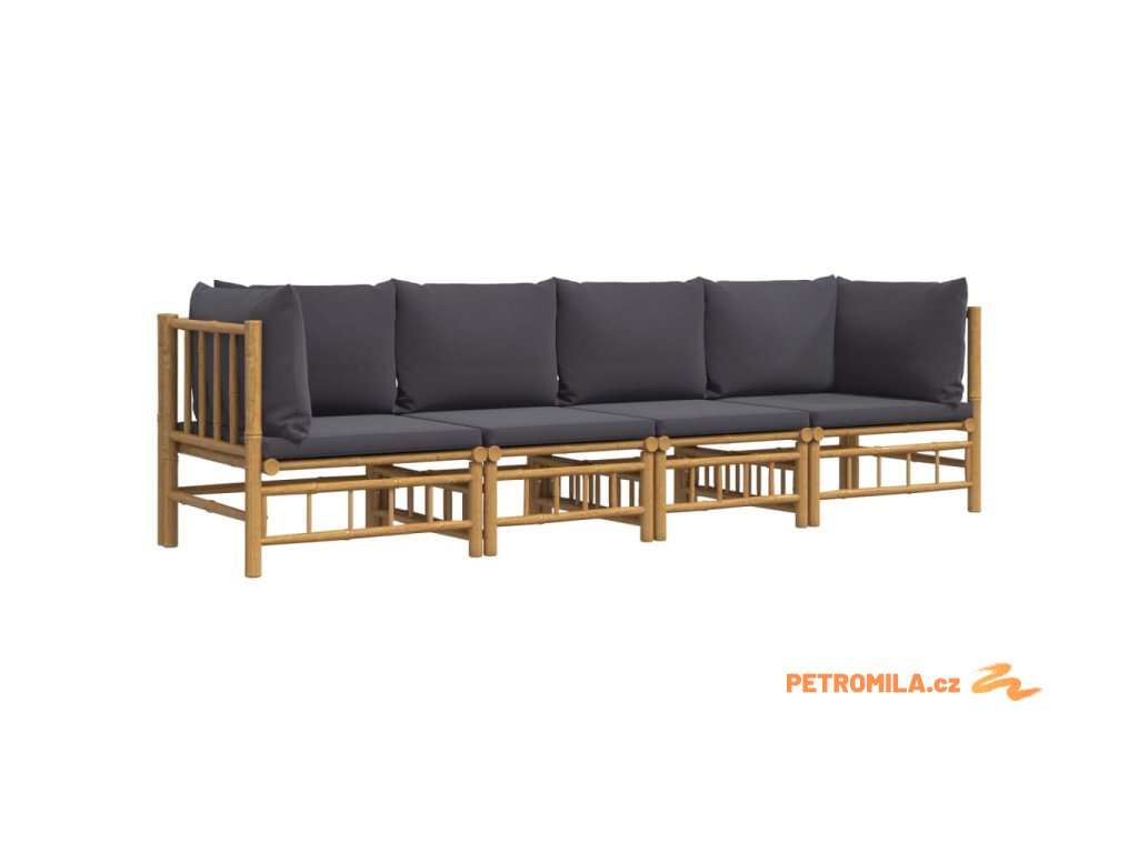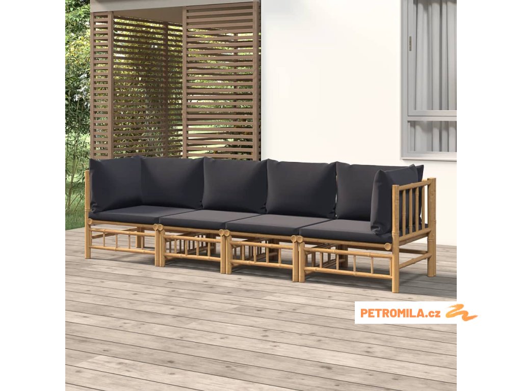 4dílná zahradní sedací souprava s tmavě šedými poduškami bambus