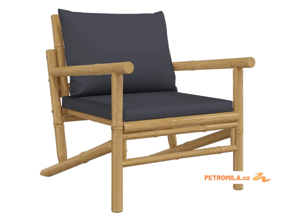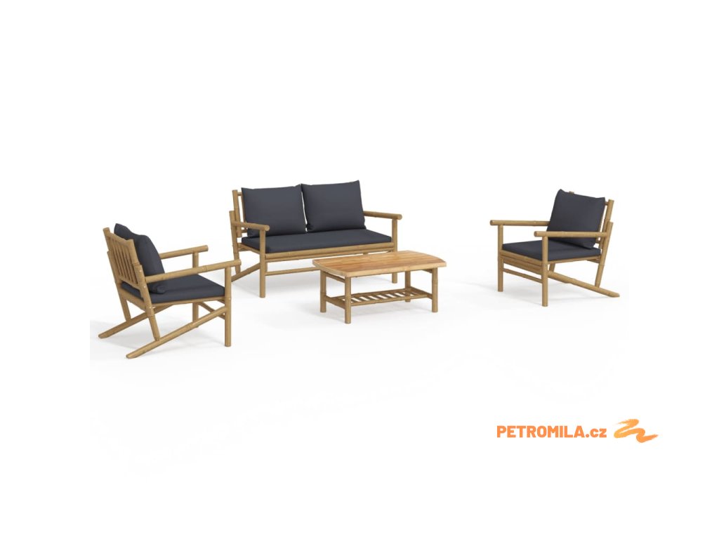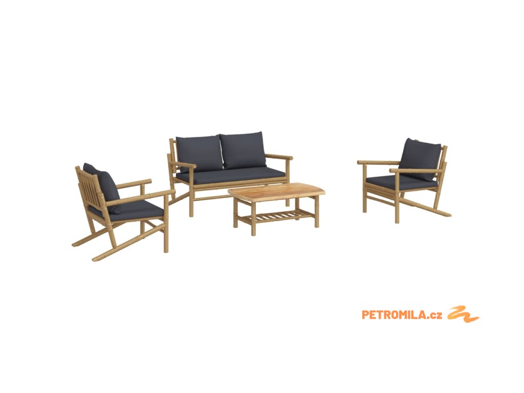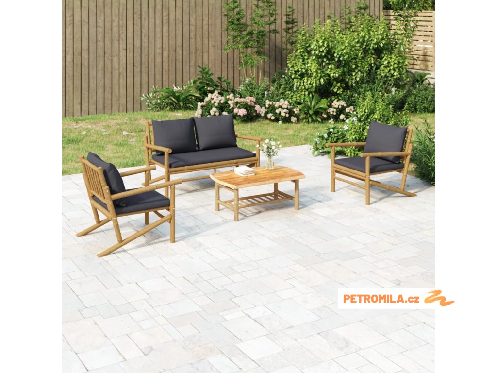 4dílná zahradní sedací souprava s tmavě šedými poduškami bambus
