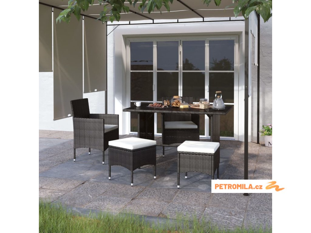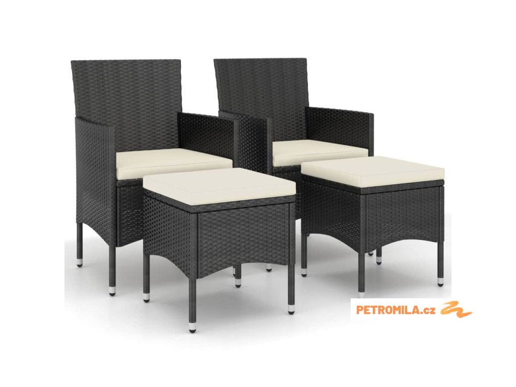 4dílná zahradní souprava křesel a podnožek polyratan černá