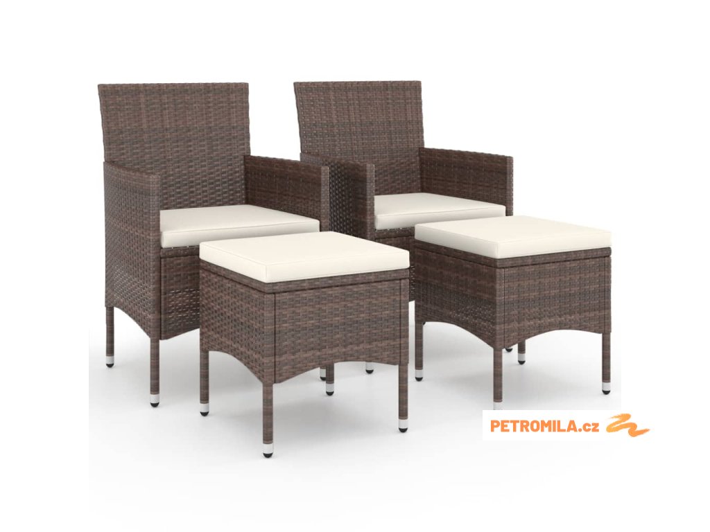 4dílná zahradní souprava křesel a podnožek polyratan hnědá