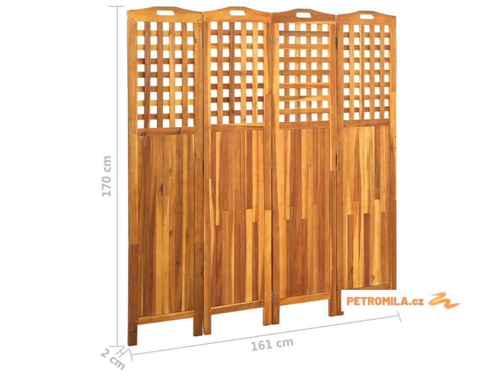 4dílný paraván 161 x 2 x 170 cm masivní akáciové dřevo