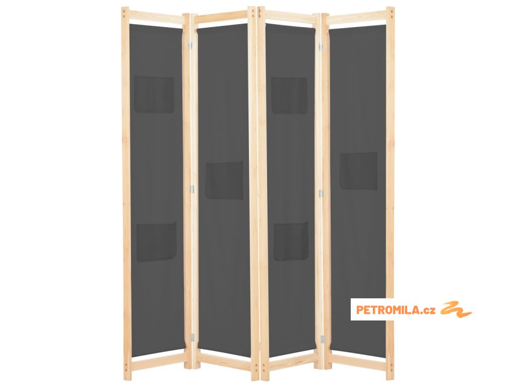 4dílný paraván šedý 160 x 170 x 4 cm textil