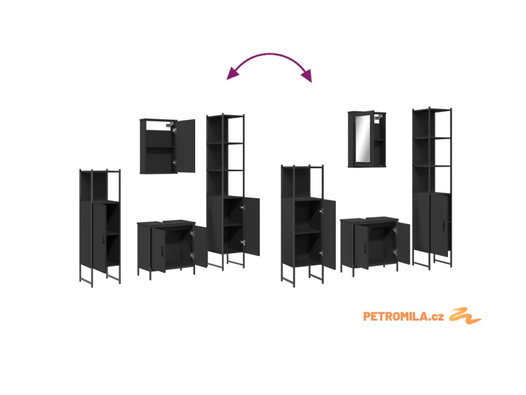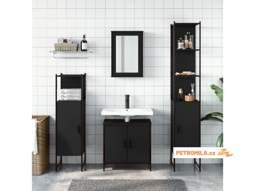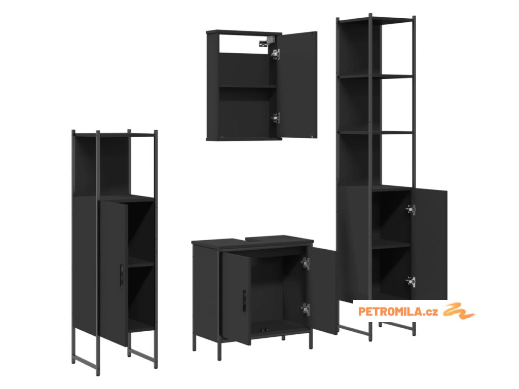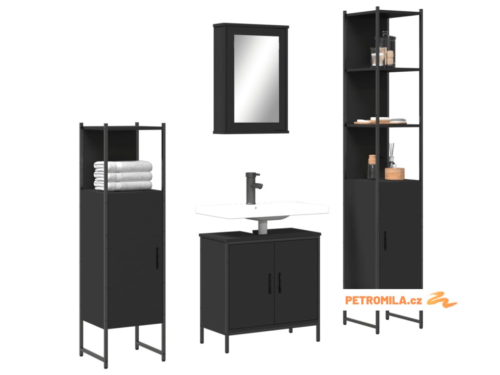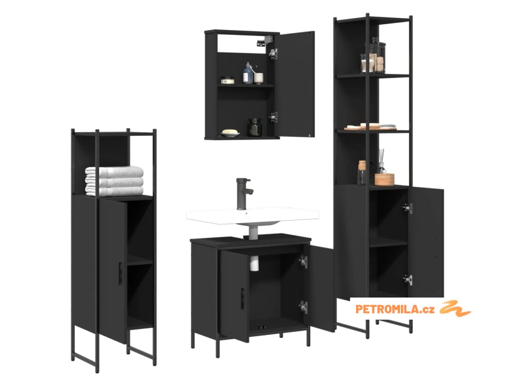 4dílný set koupelnového nábytku černý kompozitní dřevo