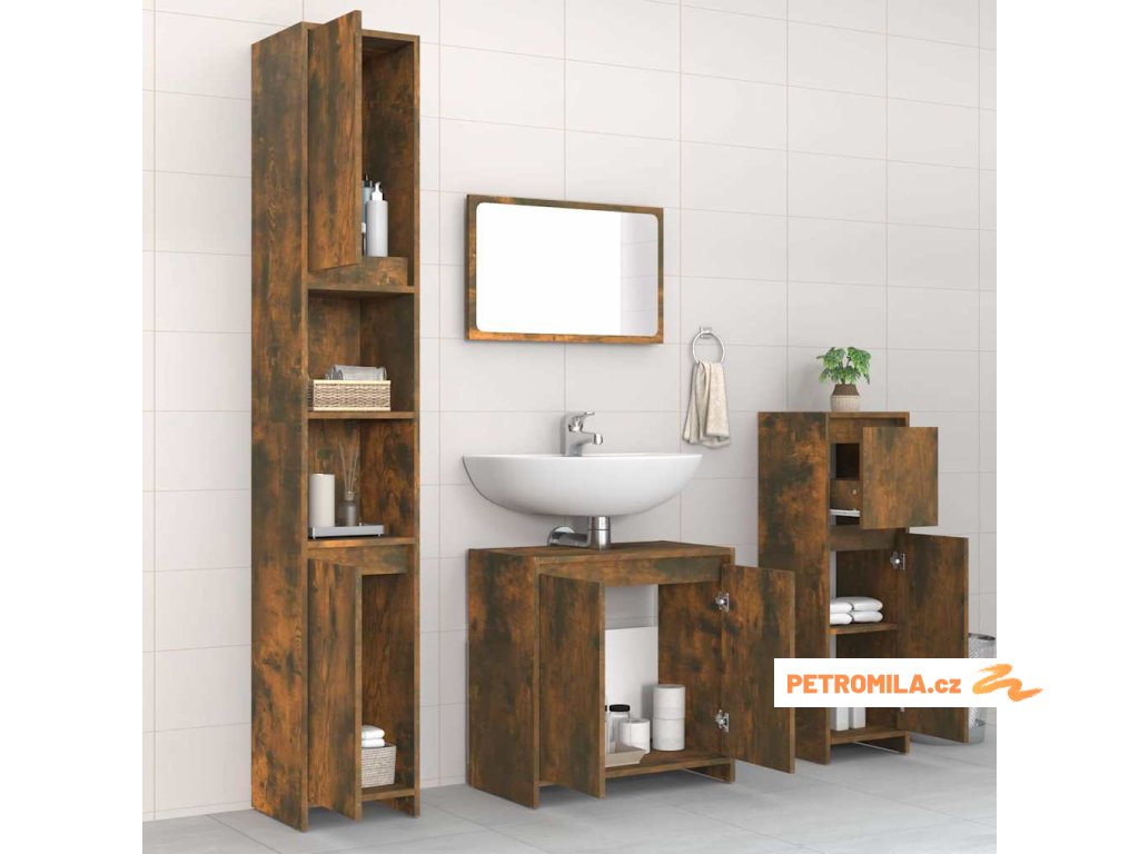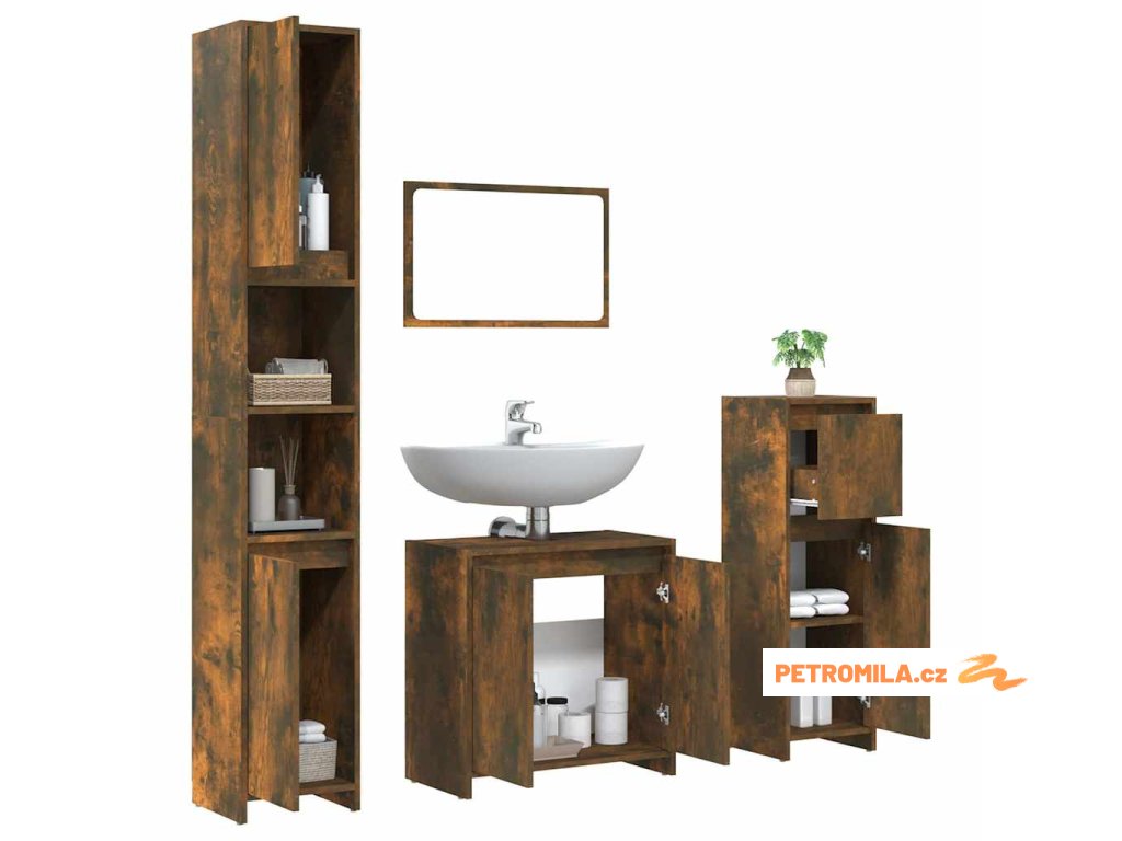 4dílný set koupelnového nábytku kouřový dub kompozitní dřevo