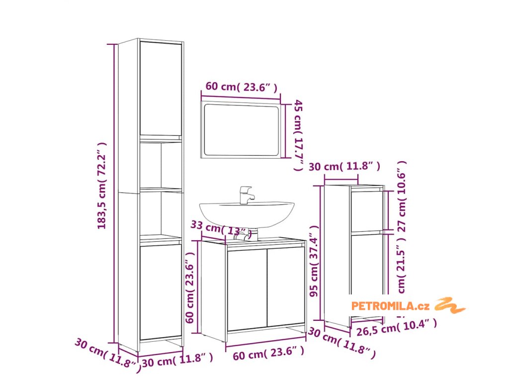 - Rozměry skříňky pod umyvadlo: 60 x 33 x 60 cm (Š x H x V) Balení obsahuje:
