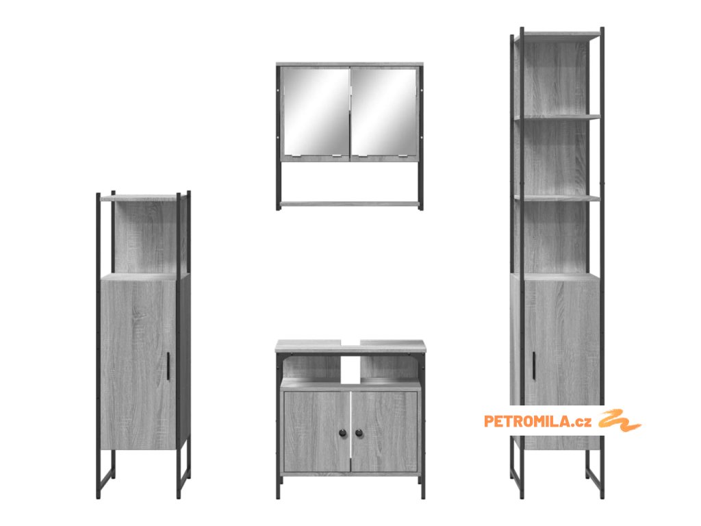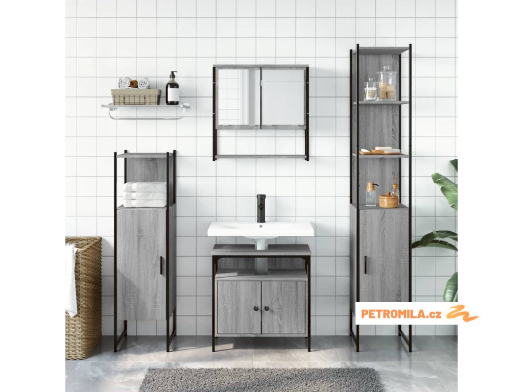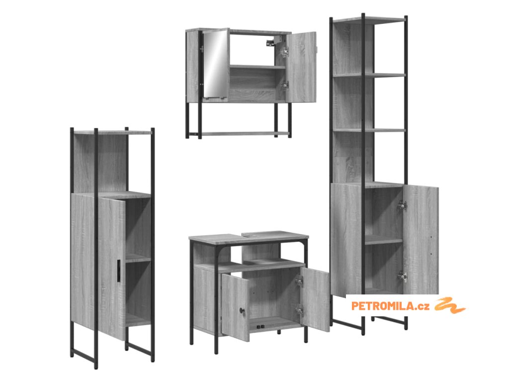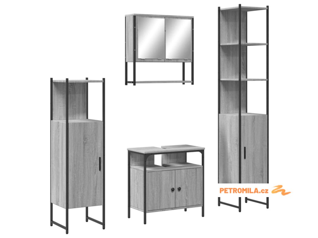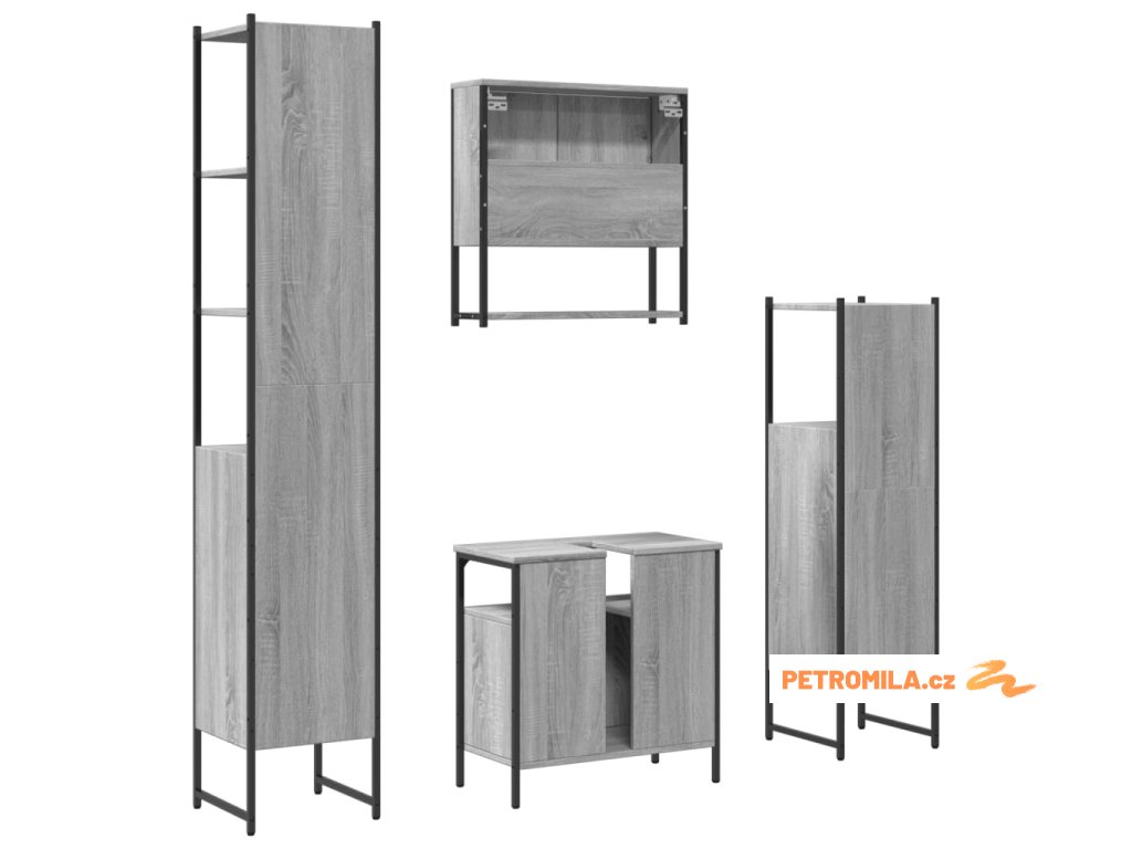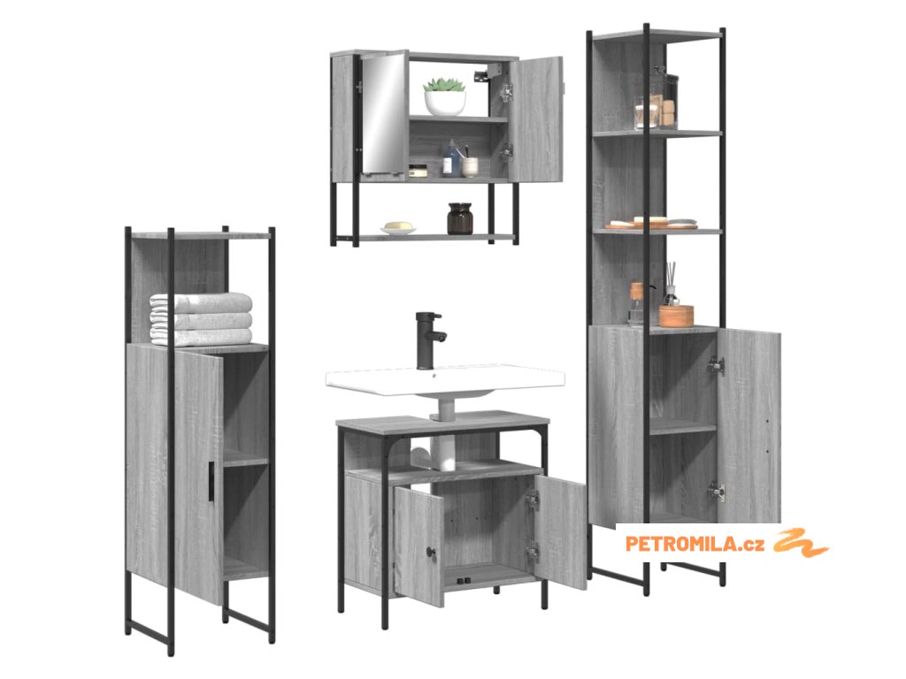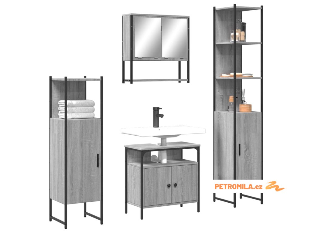 4dílný set koupelnového nábytku šedý sonoma kompozitní dřevo