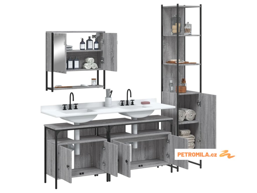 4dílný set koupelnového nábytku šedý sonoma kompozitní dřevo