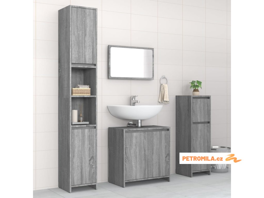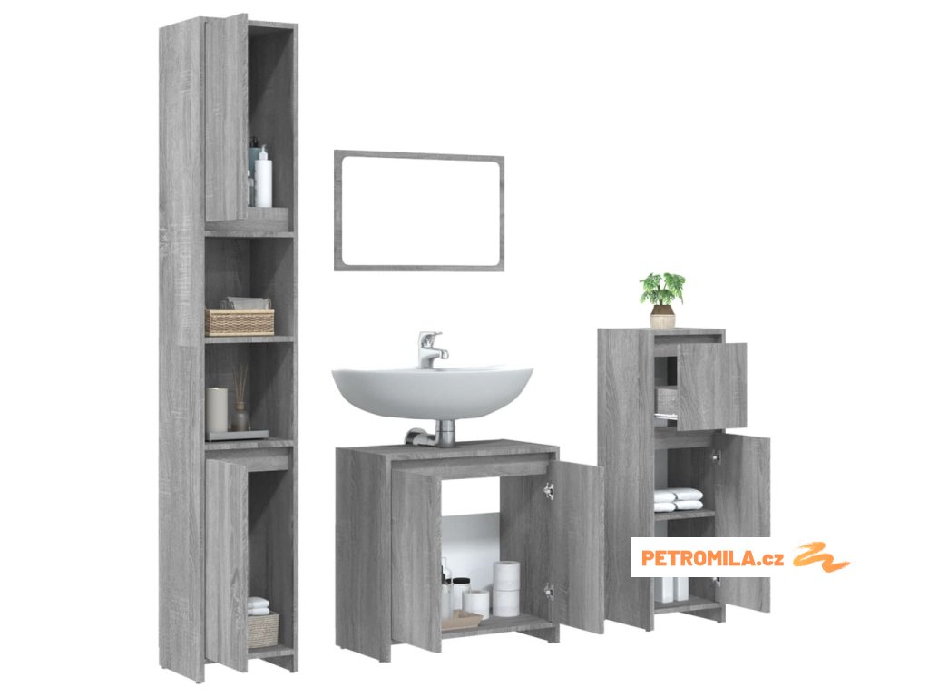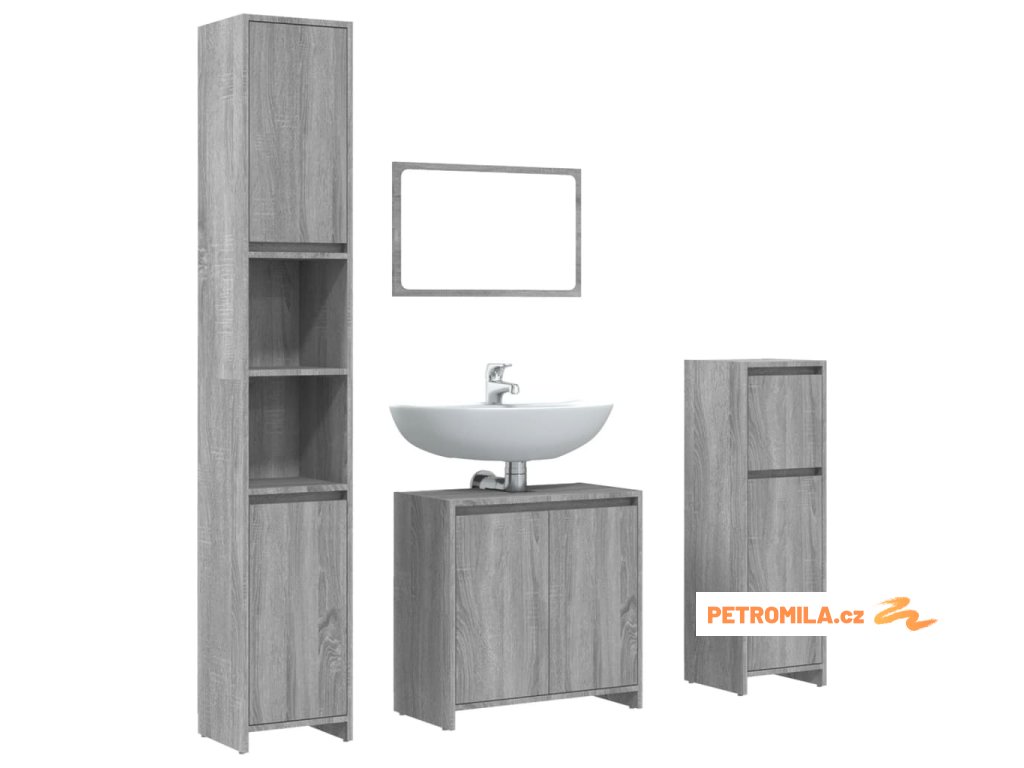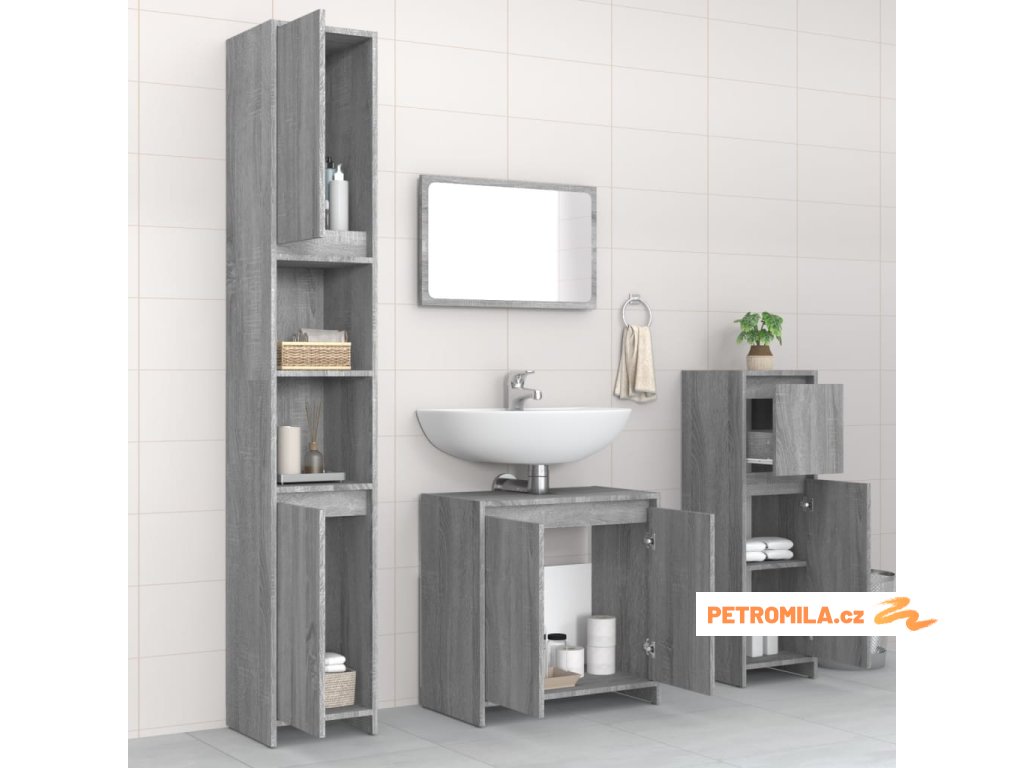 4dílný set koupelnového nábytku šedý sonoma kompozitní dřevo
