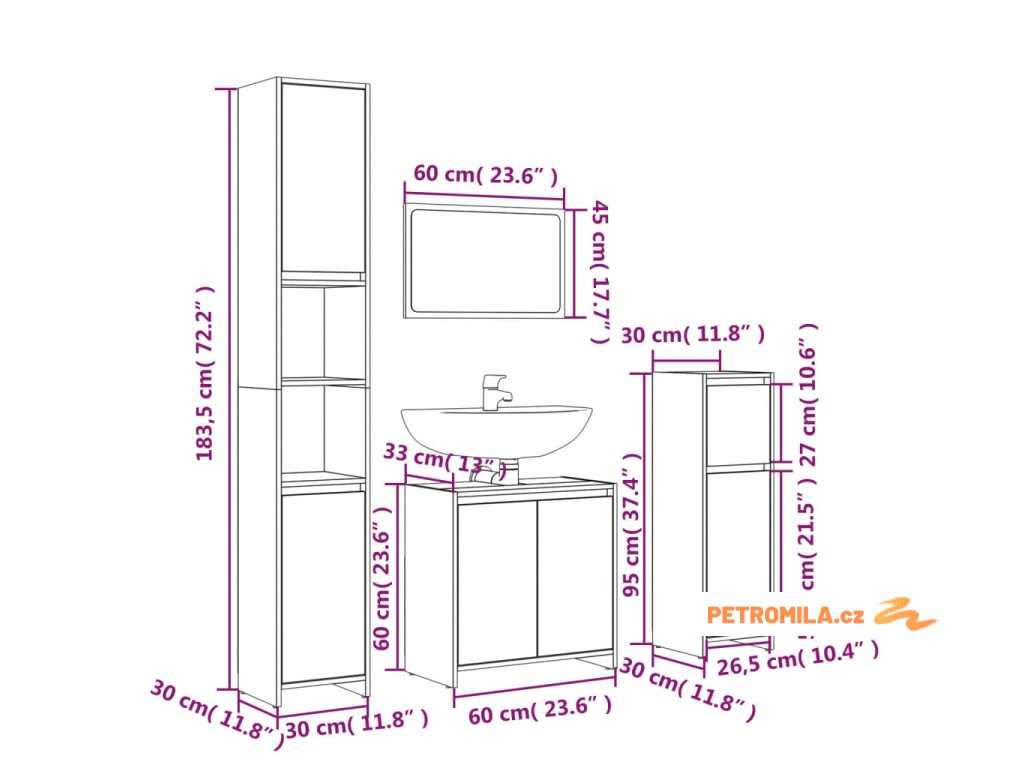 - Rozměry skříňky pod umyvadlo: 60 x 33 x 60 cm (Š x H x V)