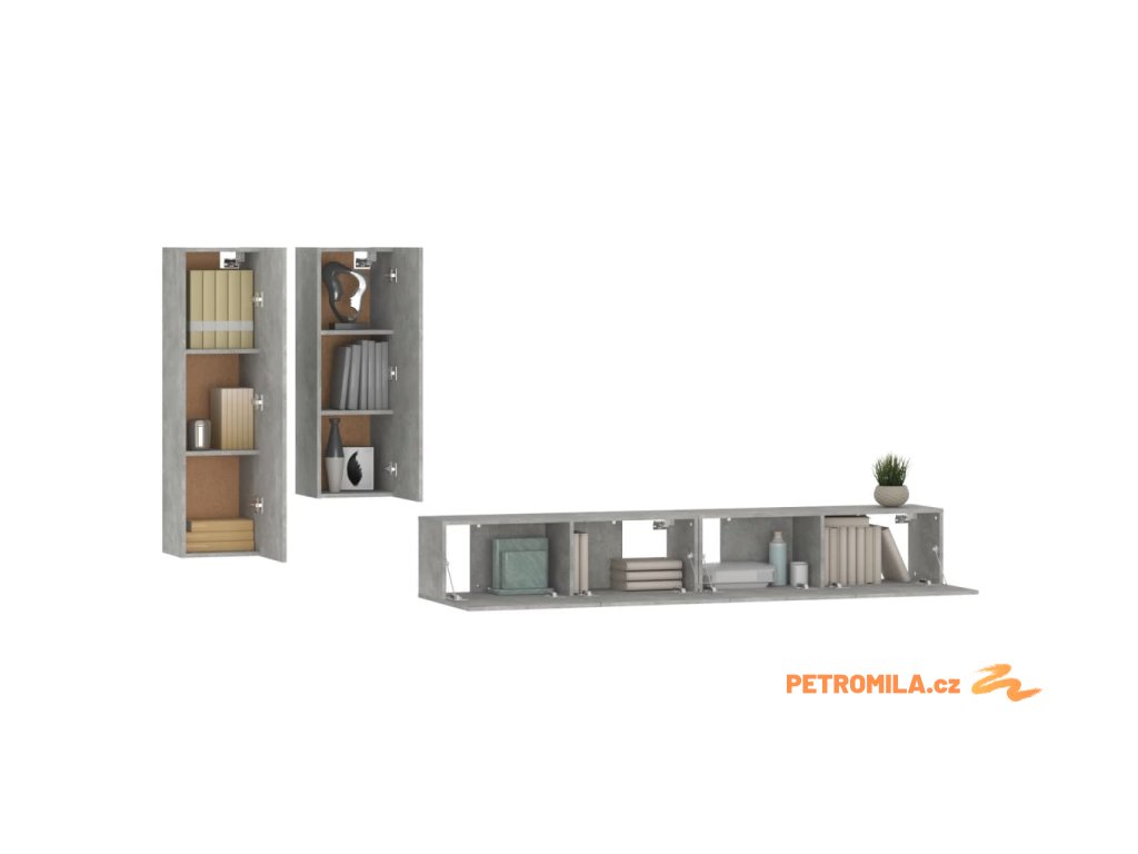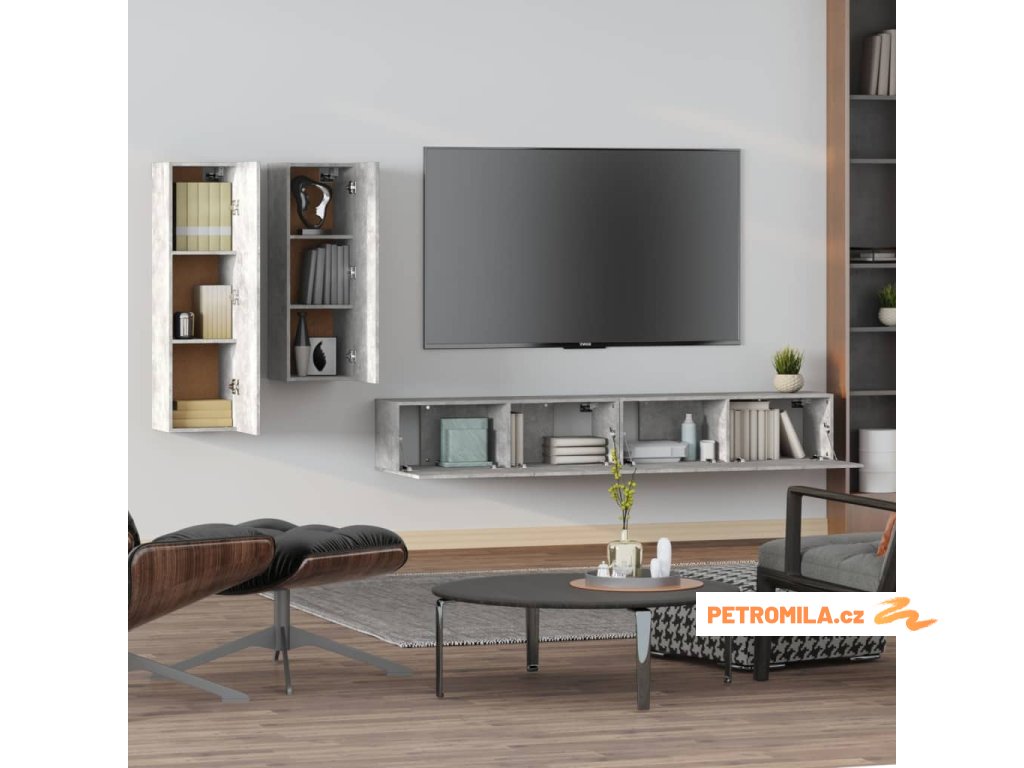 4dílný set TV skříněk betonově šedý kompozitní dřevo