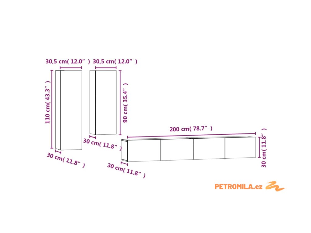 - 1x TV skříňka: 30,5 x 30 x 110 cm (D x Š x V)