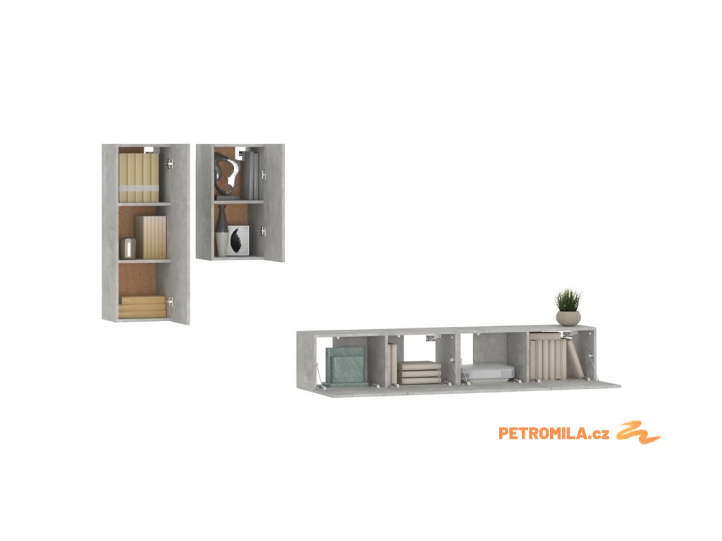 4dílný set TV skříněk betonově šedý kompozitní dřevo