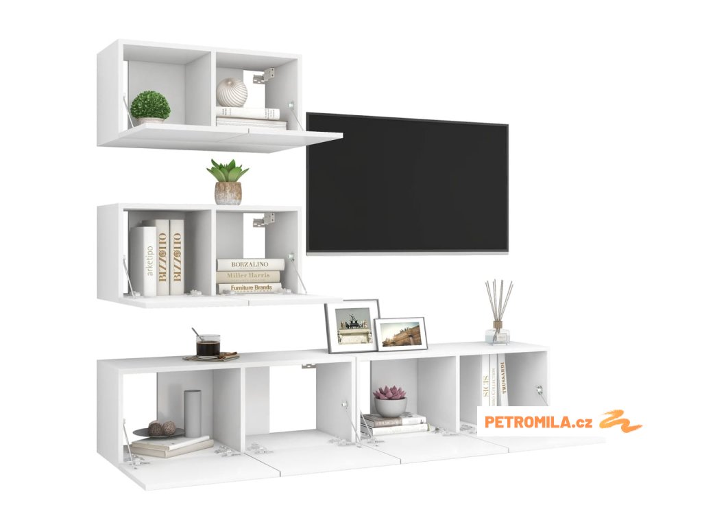 4dílný set TV skříněk bílý kompozitní dřevo