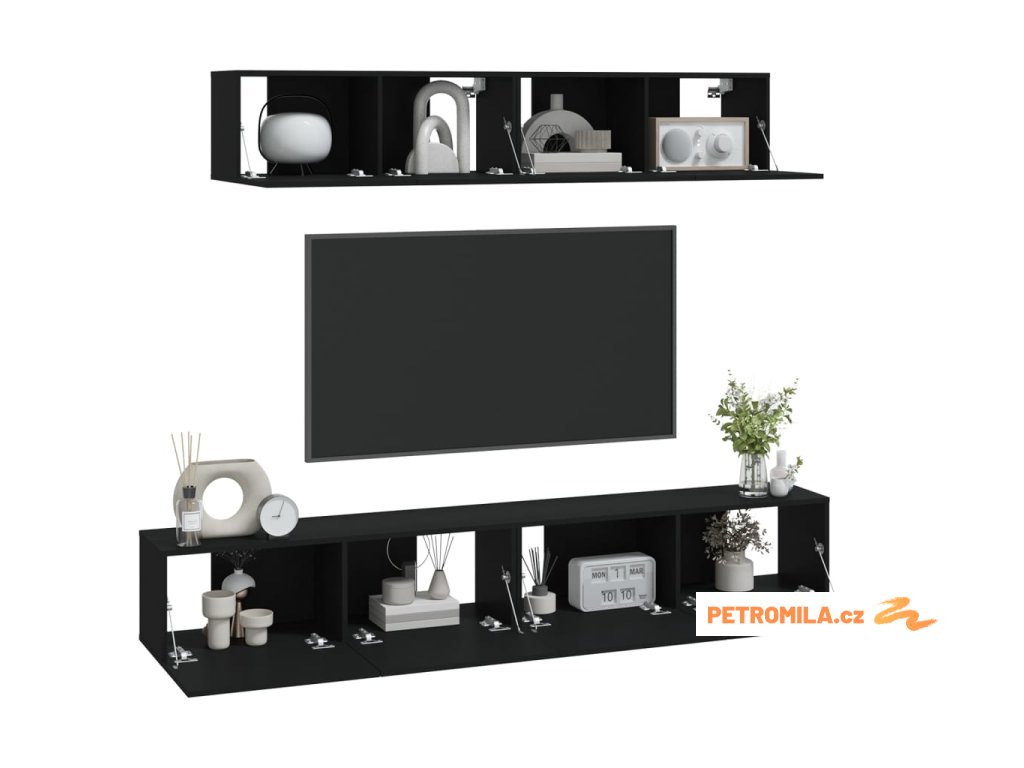 4dílný set TV skříněk černý kompozitní dřevo