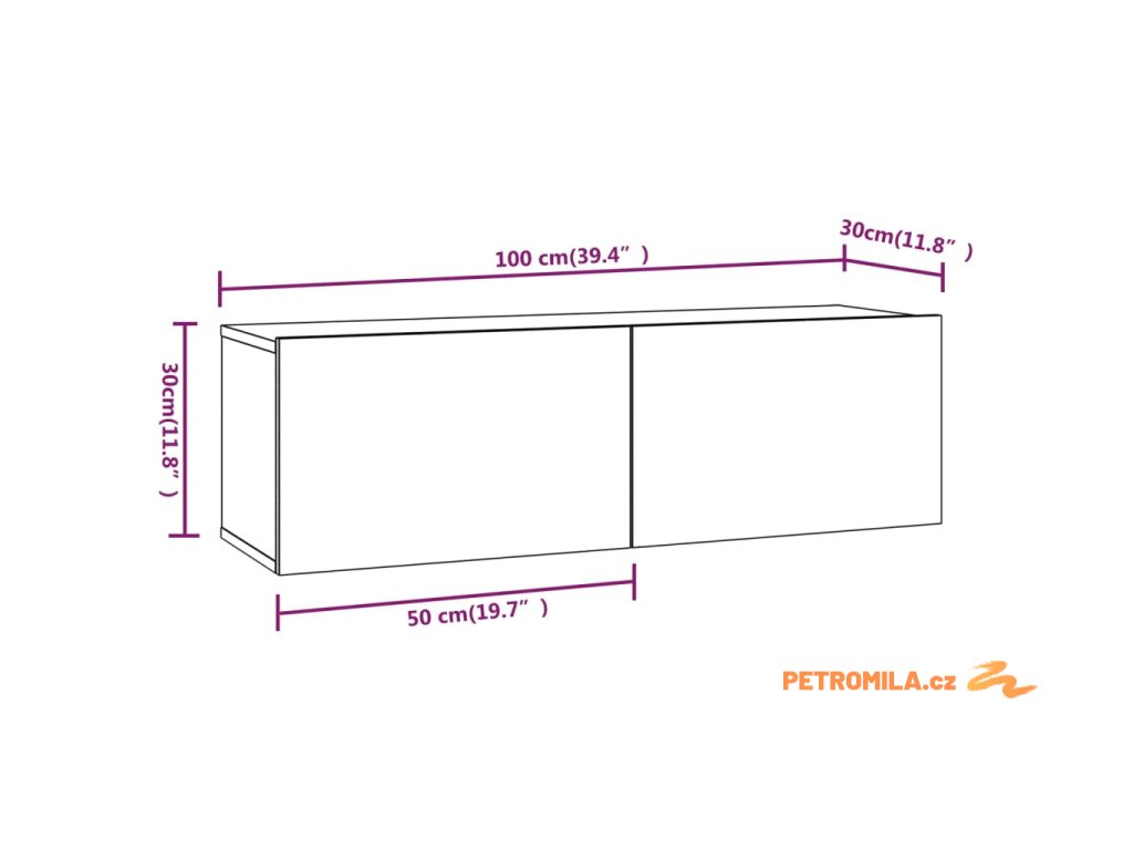 - 2x TV skříňka: 100 x 30 x 30 cm (D x Š x V)