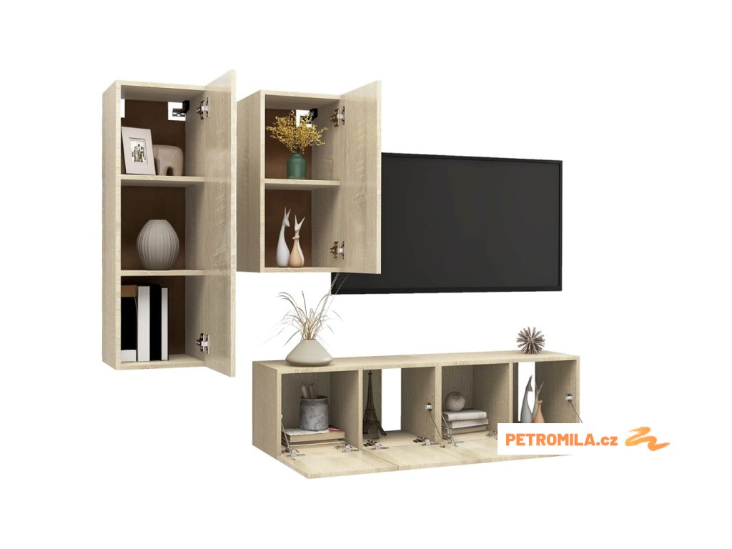 4dílný set TV skříněk dub sonoma kompozitní dřevo