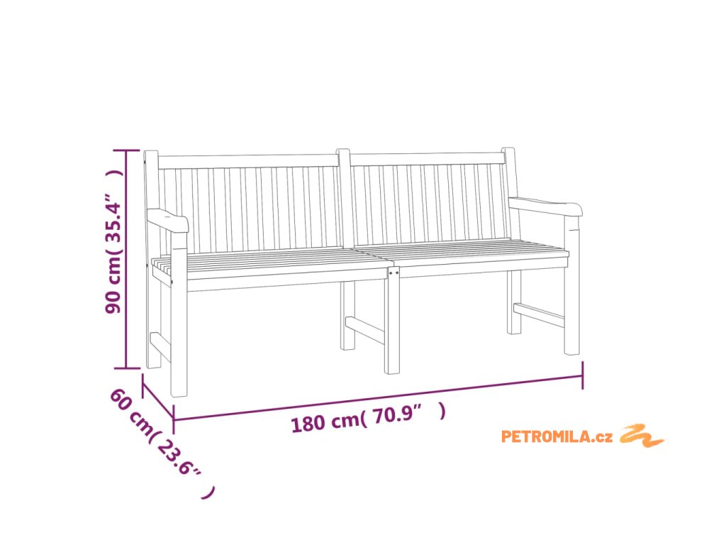 - Rozměry: 180 x 60 x 90 cm (Š x H x V)